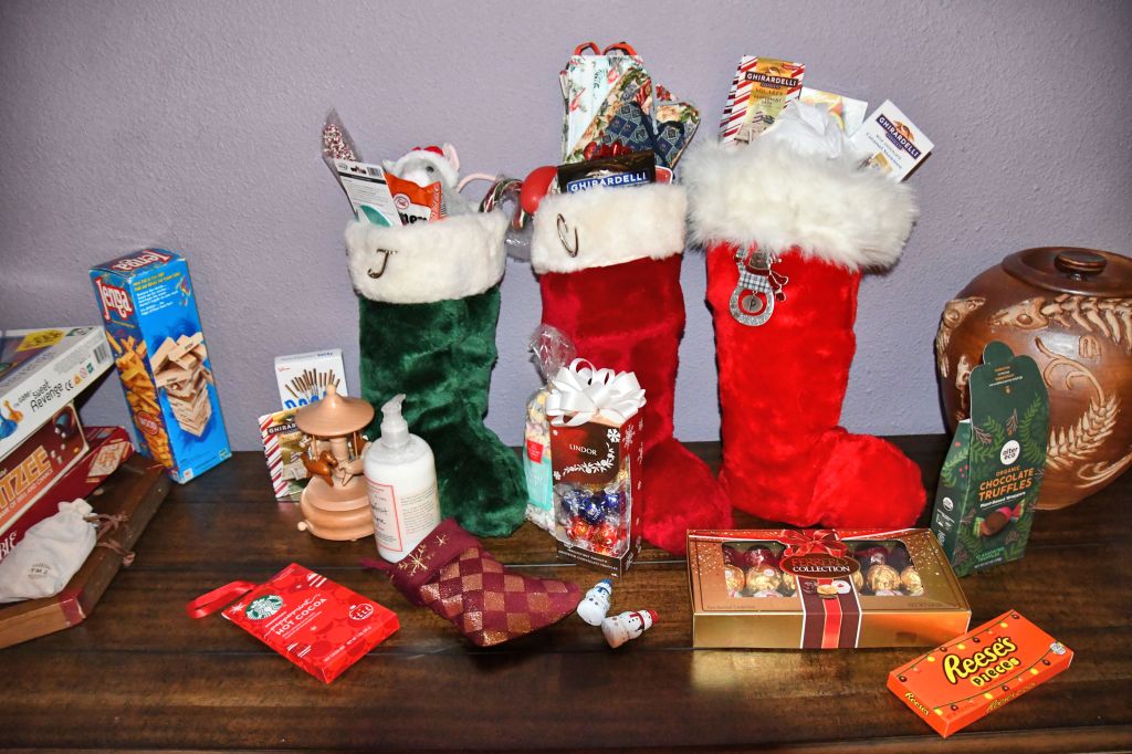 Our family has always valued stockings as the first and most important part of gift-giving at Christmas. My dad’s contribution to the tradition is that tangerines go into the toes to keep them round. I tried to use oranges this year but they were too big and could barely fit. Next year, back to tangerines. My mom’s contribution is that something appealing must stick out the top. I know you see mostly candy in the picture above, but the socks are packed with tiny gifts that Tara and I ideally will collect or make all year long. When I was a kid, I remember my parents sometimes didn’t have enough to fill a sock and had a hard time getting something to appear out of the top without slipping back inside. Here you see we went overboard and couldn’t fit everything in.