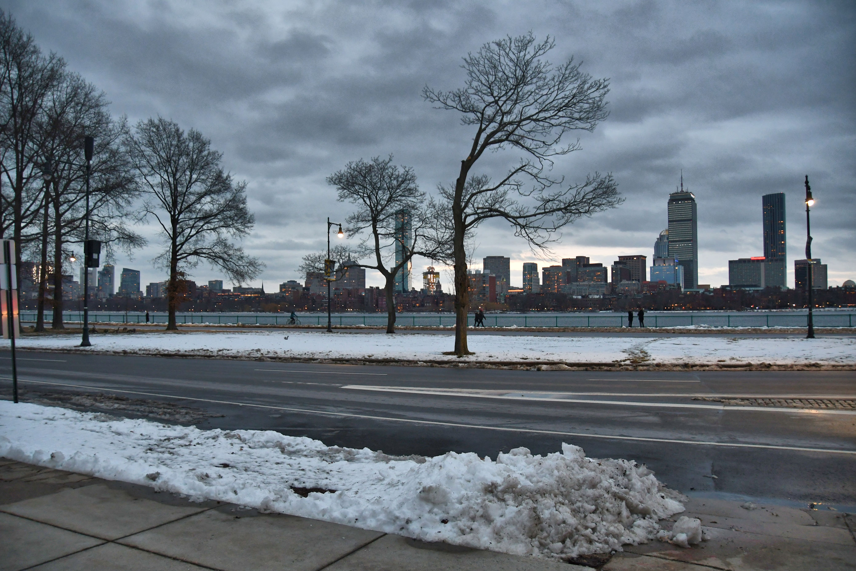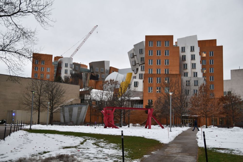 We finally made our way around to the river-facing side of the campus. In Killian Court it was fun to see that we were not the only tourists! Despite the cold and snow and darkening sky, we had to take our turn getting photos in front of the impressive Maclaurin buildings as tourists from around the world (we heard multiple languages) got photos there.