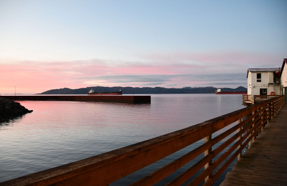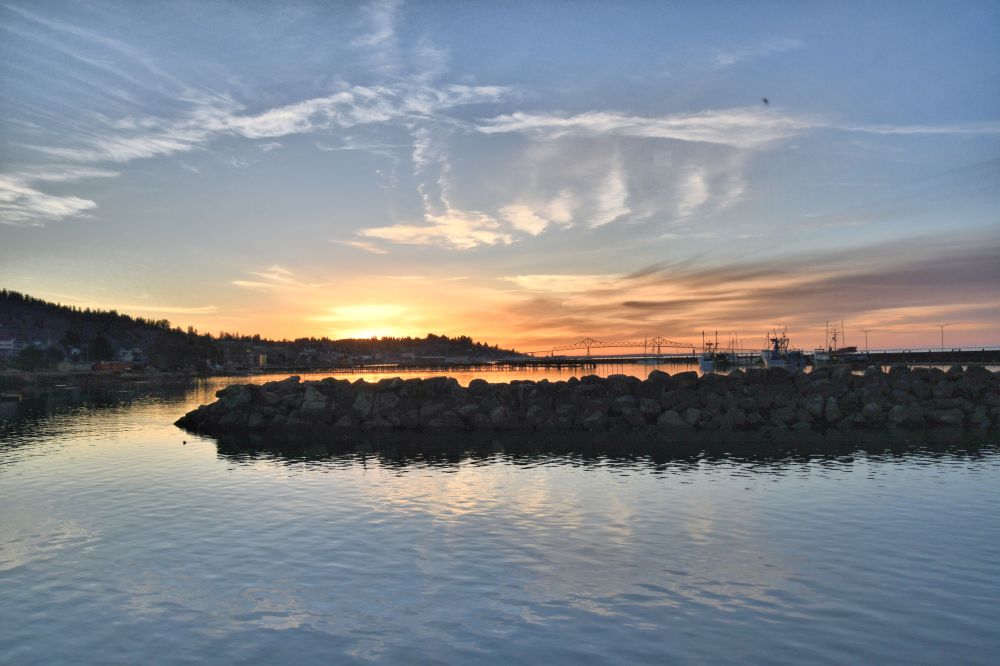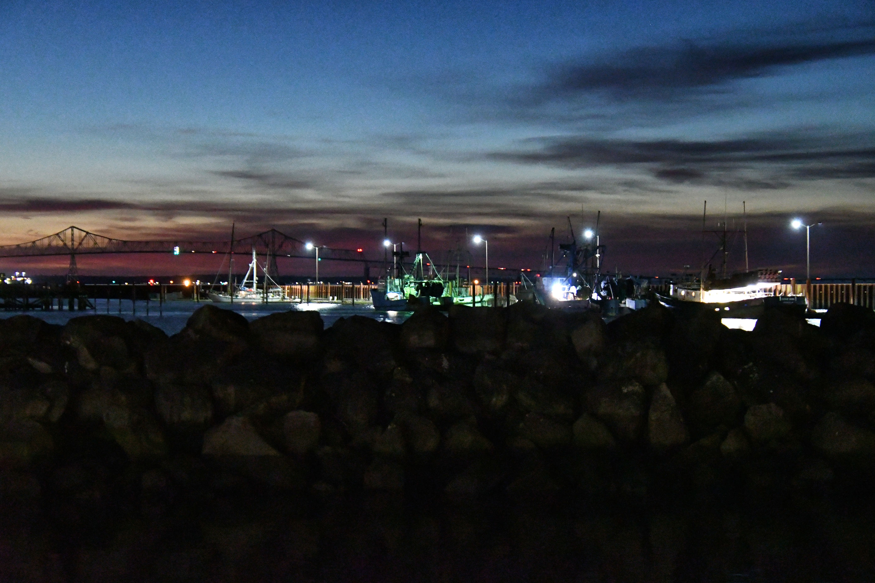 We had discussed a little about which place we should go to eat, but when we came over the last hill and saw the sky, my goal was to get to a place on the water because we needed access to this view. The sunset was going to be remarkable. I pulled in at the first place on the water: Rogue Public House. The pub is on Pier 39 and you actually have to drive on a pier to get to it – yeeks! But I knew out there we would have an unobstructed view of the sky.