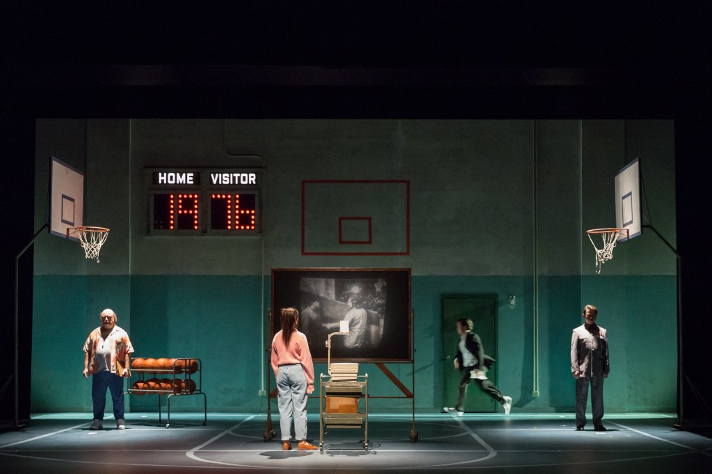 The stage prior to the performance. I love how well they made the set look like a beat-up school gymnasium from the 1980s. This photo is mine. Most of the rest of the photos on this post are courtesy of Portland Center Stage.