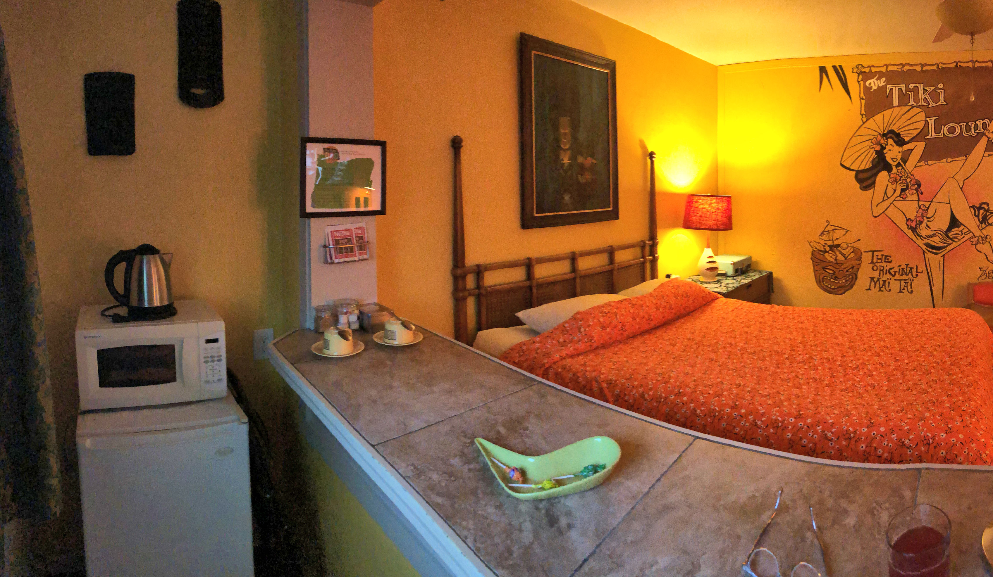 Each of the five rooms is themed. There is an Oregon Trail room, and That 70s Room. Most especially, there is a Star Trek Enterprise Room – but it was booked. I reserved the Tiki Lounge Room.