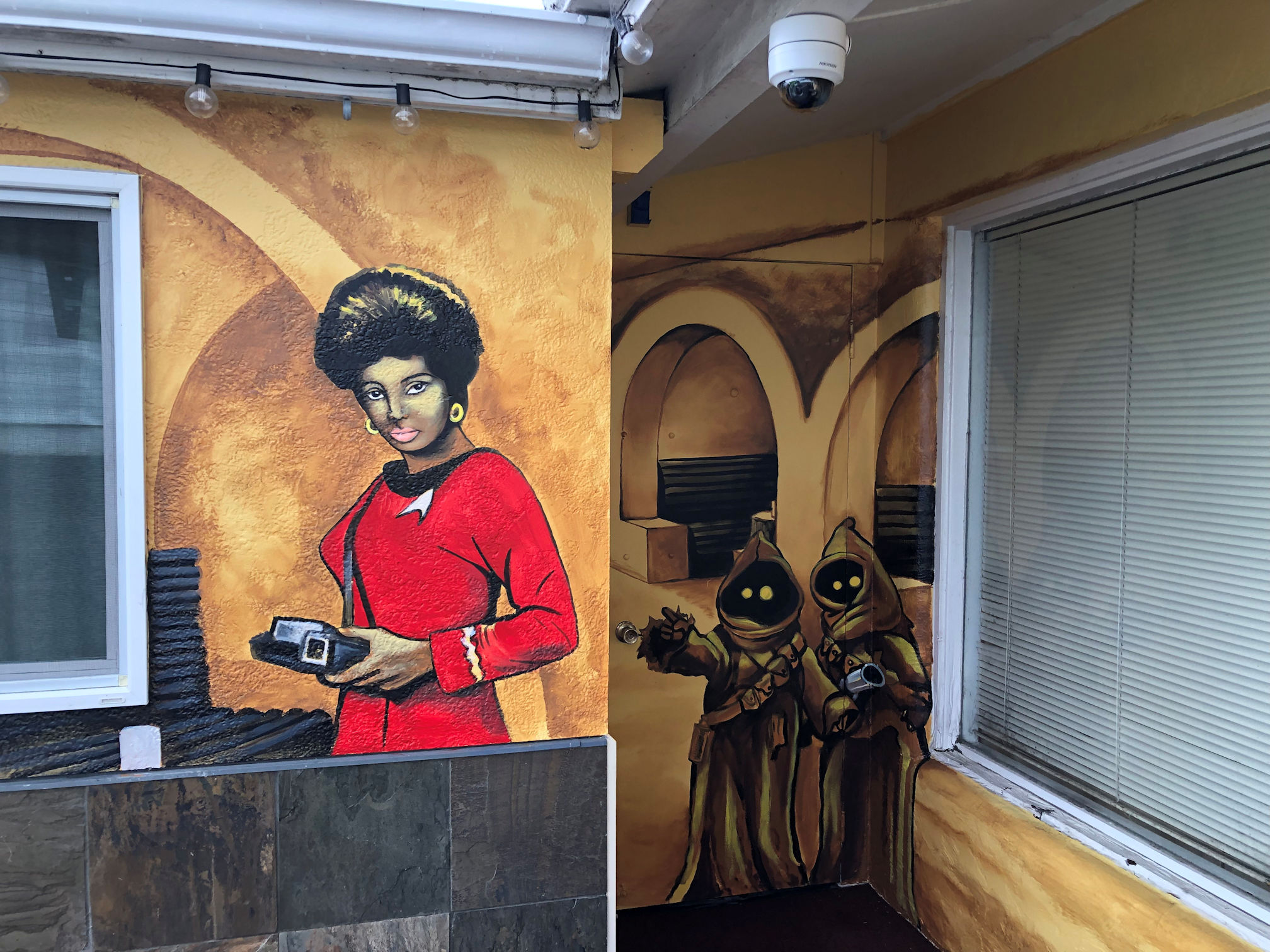 2. What a charming place with a warm host! I love the Star Trek and Star Wars murals, and they make me wonder of how the Star Trek-themed room looks like. I can imagine this as a perfect spot for rendezvous for the fans of either or both movies.