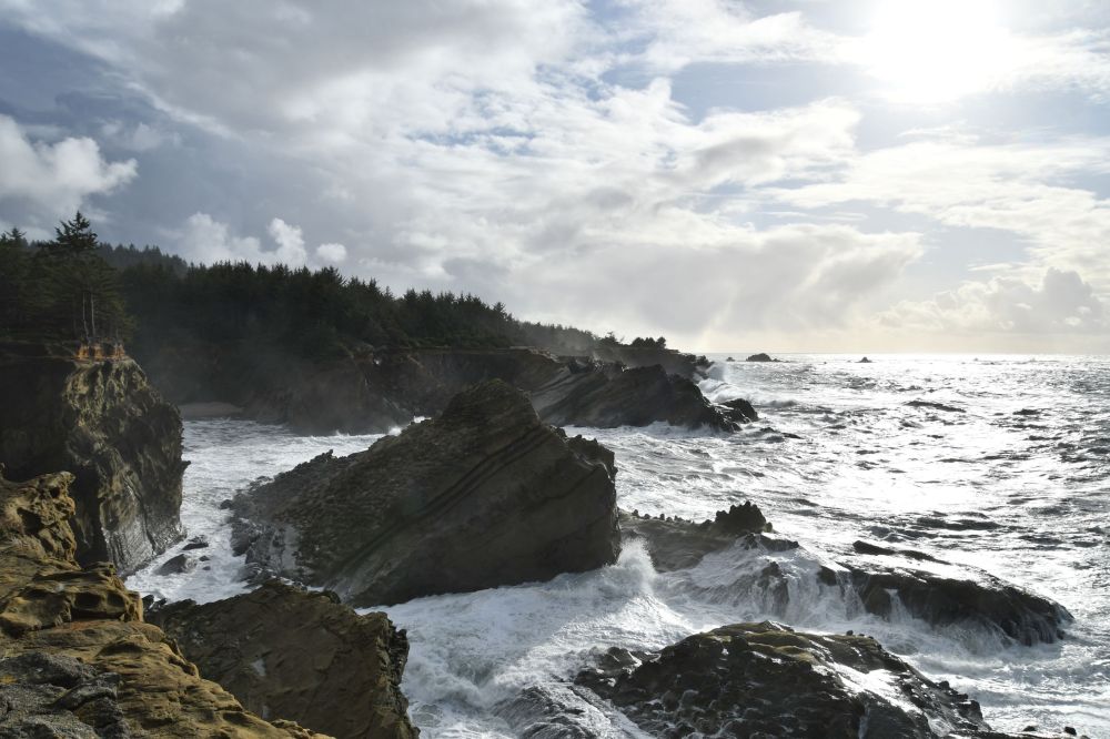 View of the Pacific Ocean coastline from Shore Acres State Park