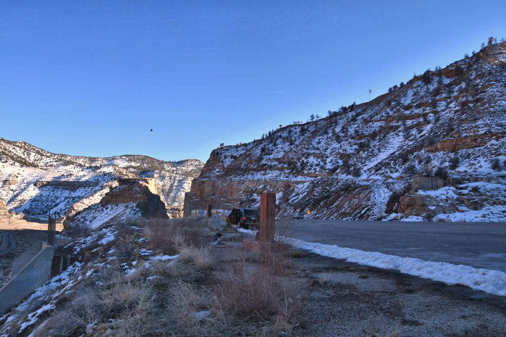 As I left the high ridges and appealing snowy slopes of the canyon pictured above, I began looking for my camp spot for the night. I chose it to be out here away from civilization, so I would not be tempted to explore, but to get back to driving early in the morning. But when I arrived at the entrance road, it was gated and closed due to snow!! I hadn’t even considered that would be the case. But luckily, I had a Plan B, and confidently zoomed on down the road. I would be spending the night outside of Moab.
