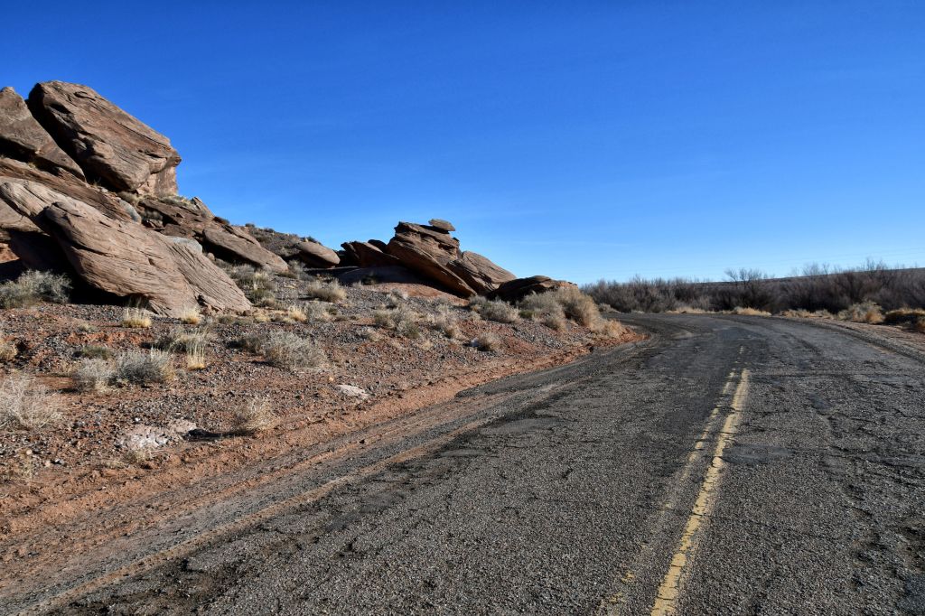 On the morning of Day 4 of my road trip, I left Holbrook and took the highway exit for the golf course, but I had no intention of golfing. People who travel this way will follow a road that could be described as “paved,” for the first two miles.