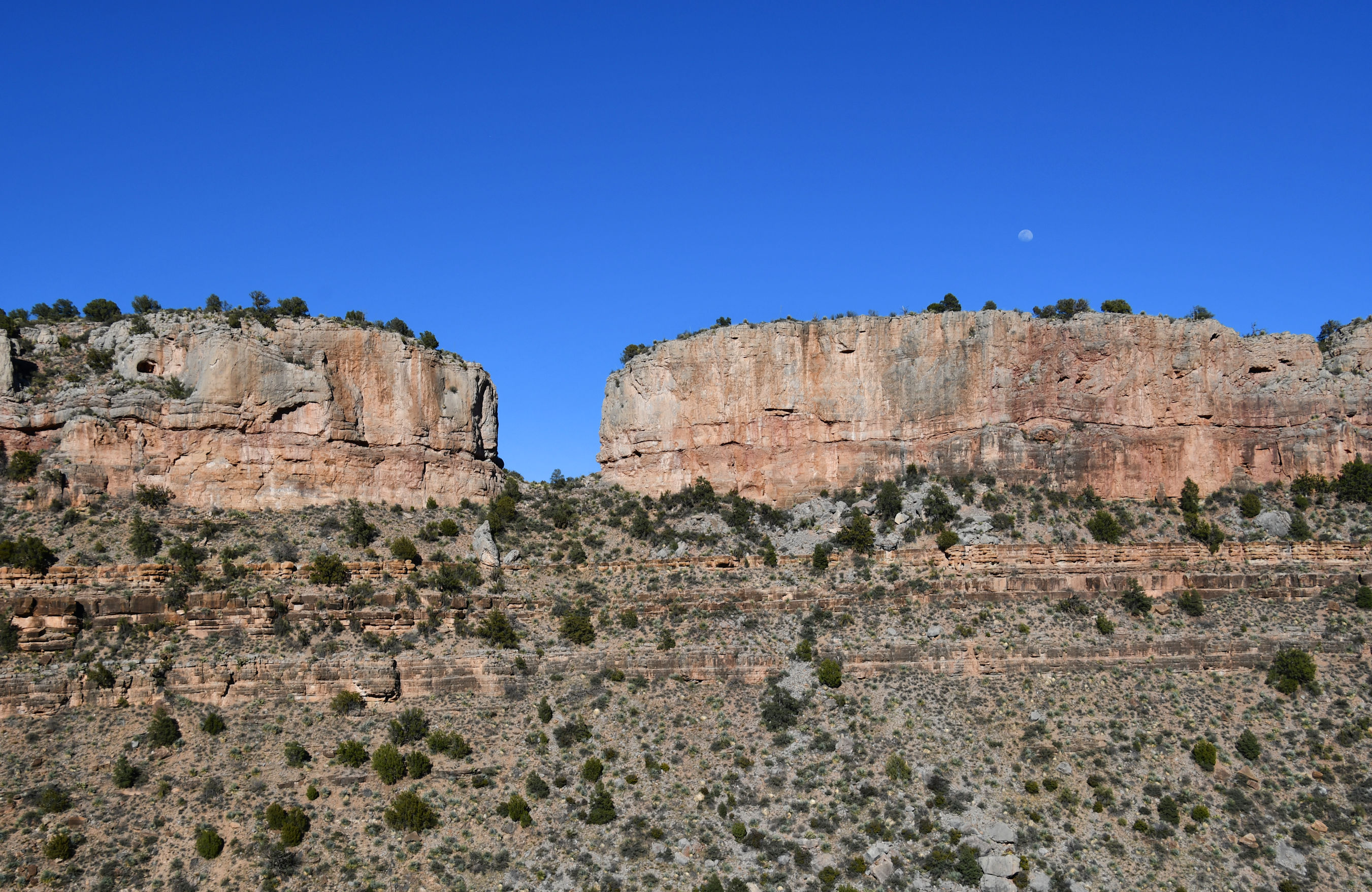 I spotted the moon above these two round, red plateaus.
