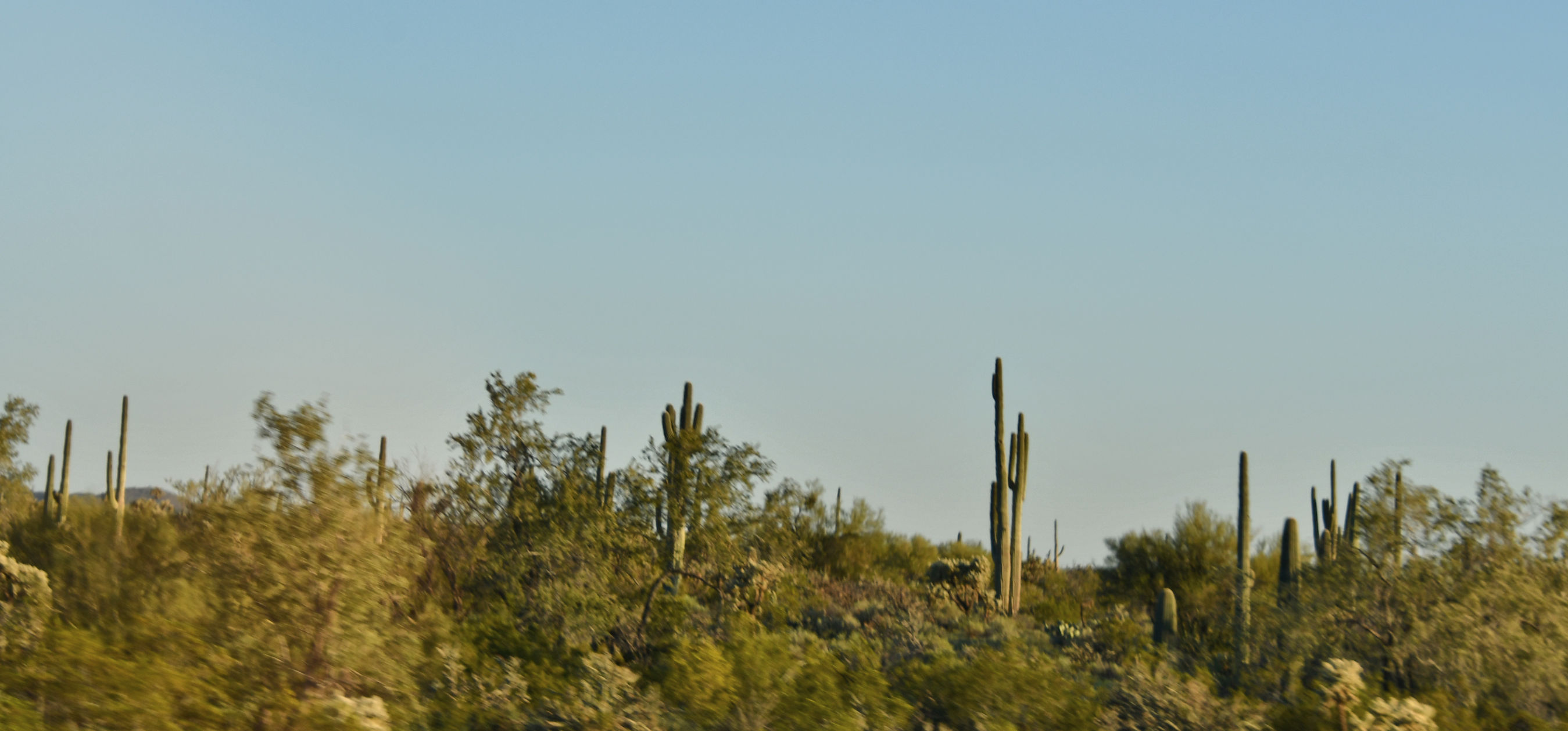 When I crossed this desert and began to approach those hills on the other side, I finally saw cacti for the first time during my journey. It was getting late and I did not stop for photos and merely caught some lopsided images out my side window as I drove.