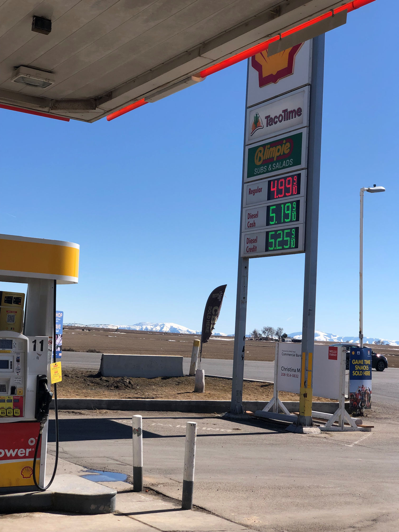 Gas prices in Oregon are high because we have some of the highest state taxes in the country. It feels more painful than it has to, because it was two dollars a gallon less just a year ago. As I passed through Idaho and Utah, prices were nearly the same. I found that in rural areas, prices steadily rose and soon were over $5.00 per gallon. If I was diligent, I could find a place here and there for less than that. Expensive gas teaches you to pay careful attention to average prices and what conditions will result in cheaper gas: a gas station that is not a name brand, paying in cash v. with a card, driving to a station 1/2 mile off the highway v. a station right next to the highway.