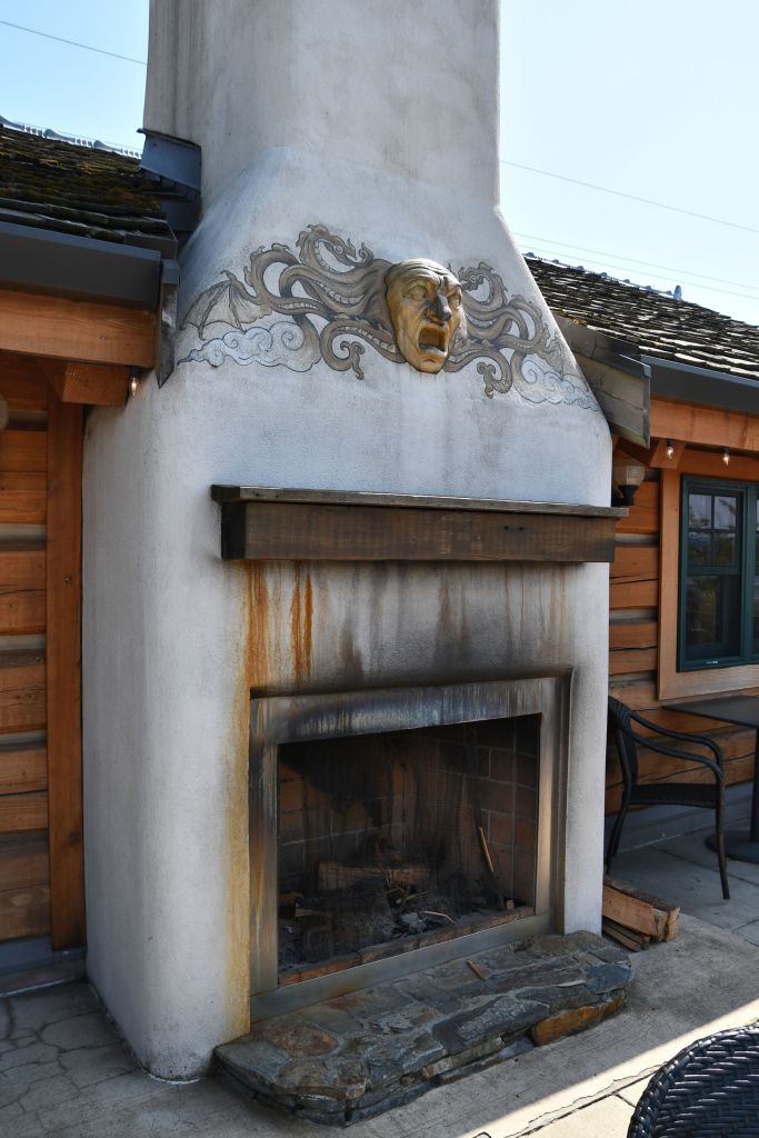 Fireplace on the patio of the Ahles Point Cabin.