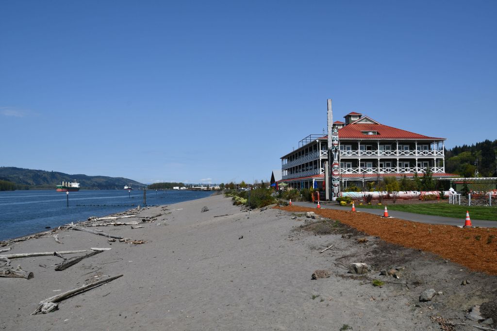 I wanted to stop because it’s another quirky place my silly Pacific Northwest that attracts me. The town sports a sign bragging about being a film location for the popular Twighlight vampire movies. The Columbia Inn has not only an old-fashioned neon sign in the shape of an Indian arrowhead – so kitschy – but also a big sign on the side that says “Elvis ate here” or something like that. Imagine being a place where a viable advertisement is: “Once upon a time, someone famous stopped there, so you should stop too!” It worked on me, at least.