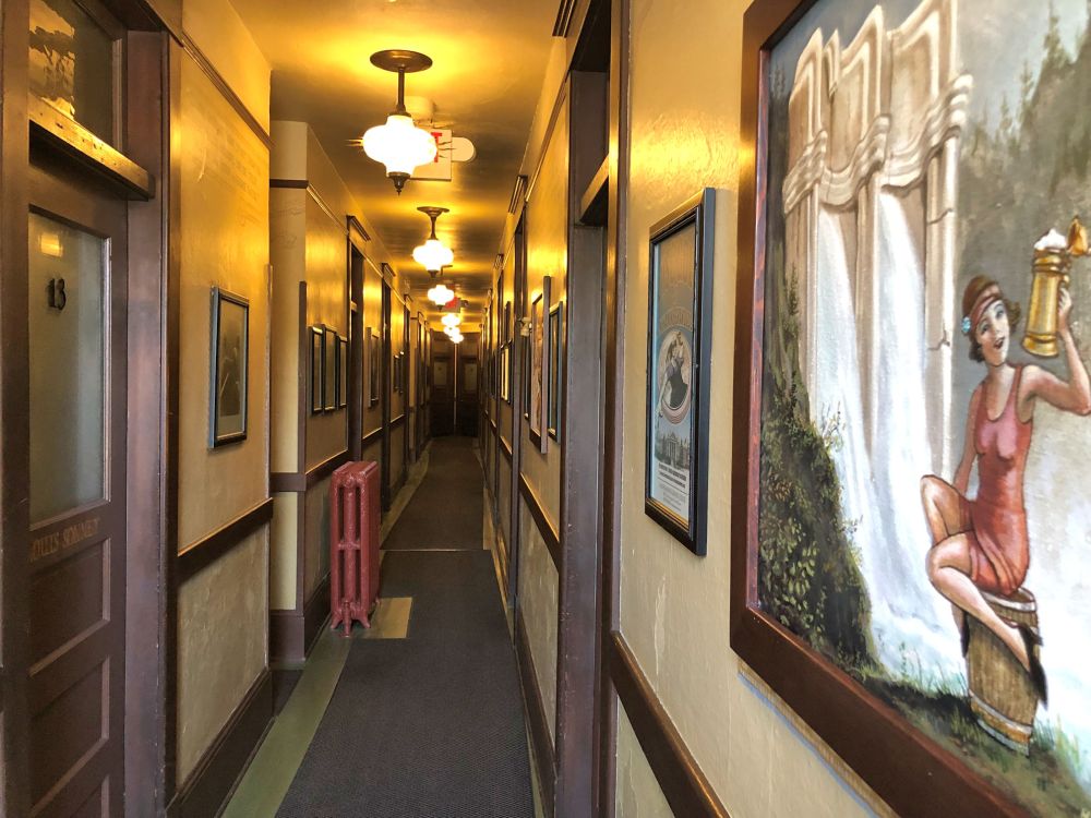 You’ll notice the names on the doorways. Each room in a McMenamins is named, in every facility. Most of them are named after someone who is relevant to the history of the building or to the local community. The inside of the room will provide paintings and framed articles that will tell the story of the room’s namesake.