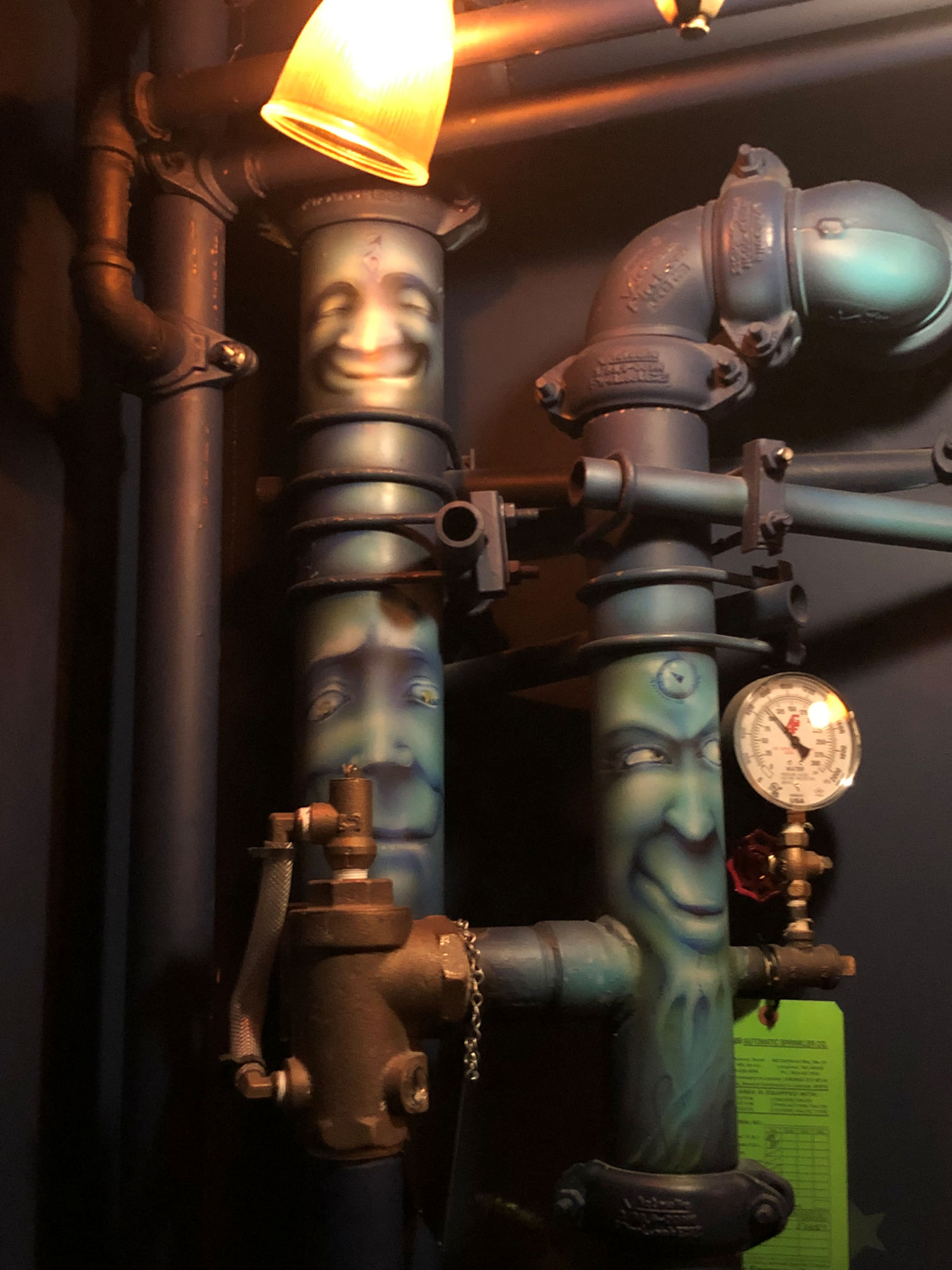 A typical McMenamins hallway with eclectic light fixtures and eclectic art. I just noticed that wonderful old radiator. I wonder if it still works.