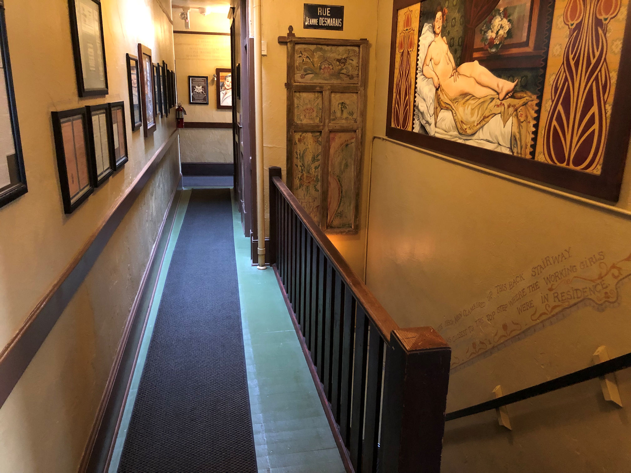 In the writing along the stairwell to the right, it explains that in the 1950s, patrons used these stairs to access the working girls on the second level.