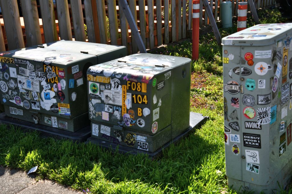 Leaving the downtown area, we had to climb a hill, up and away from sea level. There were tsunami warning signs all over the place. Then I spotted a tsunami message I don’t think I’ve seen before: the predicted height above sea level determined to be safer than the downtown level. It was painted onto the road as we drove up the hill.
