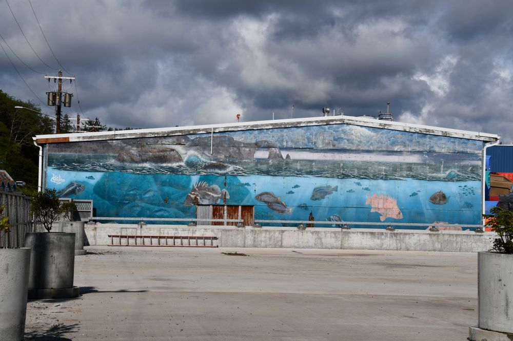 We parked within view of the fabulous Yaquina Bay Bridge. While looking at the bridge, I noticed the mural off to the right. Tara said there were many murals in Newport, and we would go check them out after dinner.