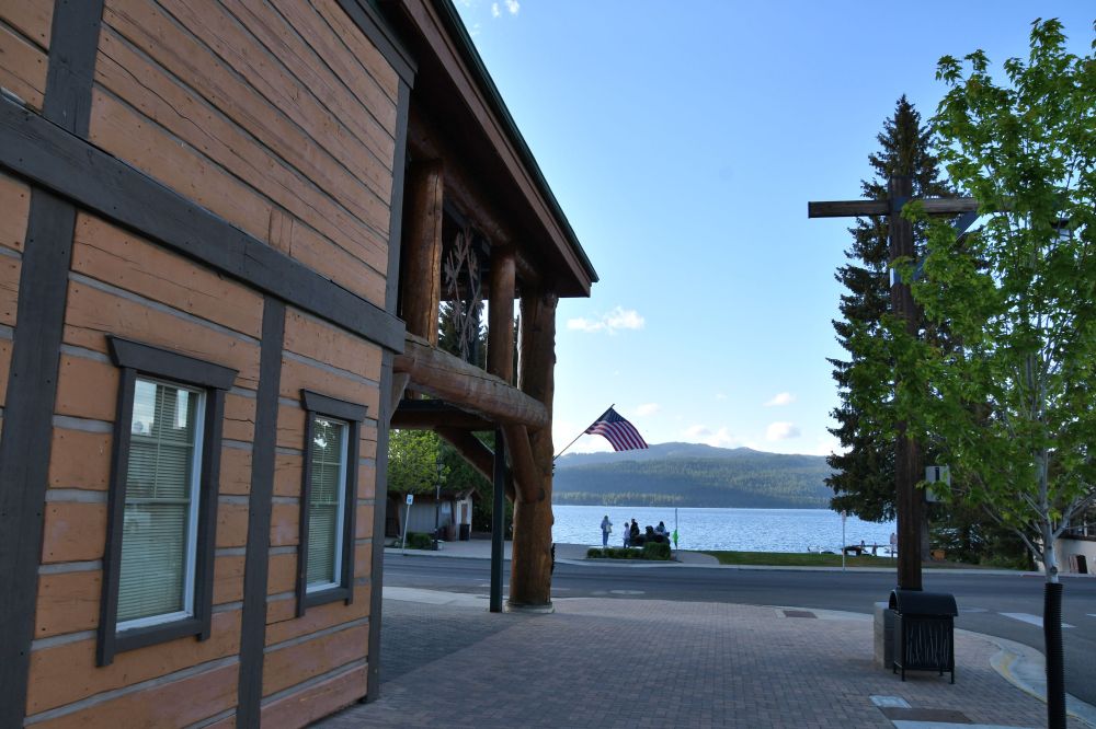 Standing at the overlook, looking back toward the city of McCall on the far shore.