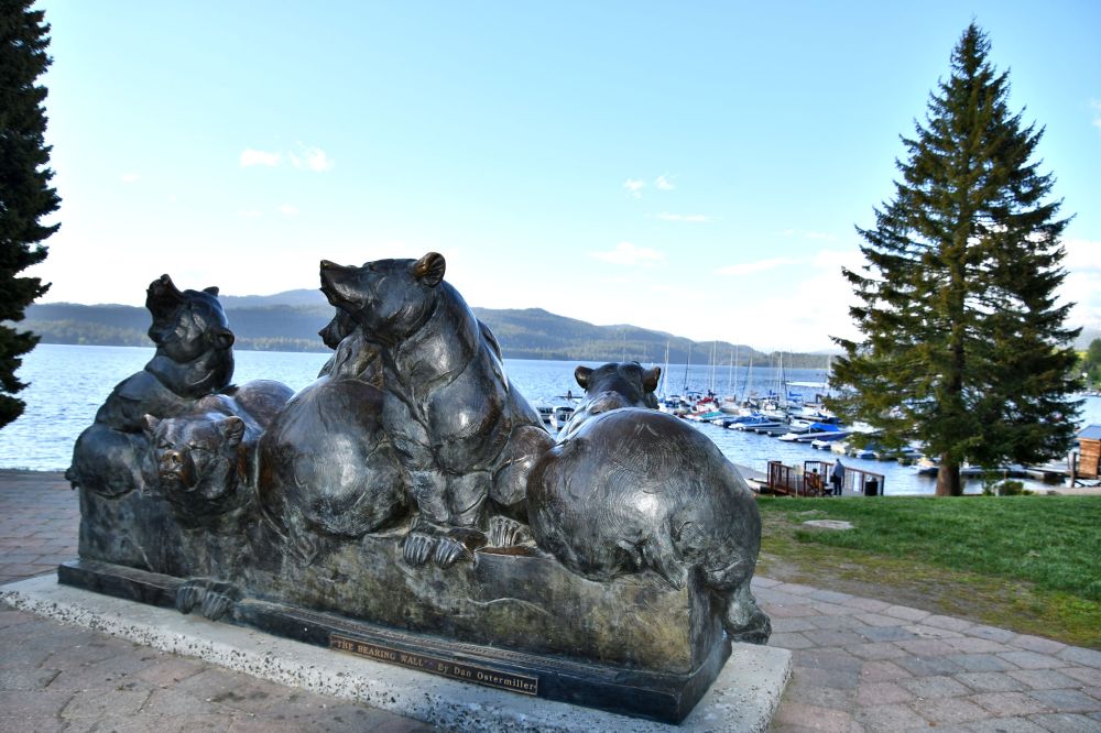 I spotted tourists clustered around the bear statue that I remembered from years ago. I parked behind the indoor skating rink (new since I had lived in the area), and walked to the shore again.