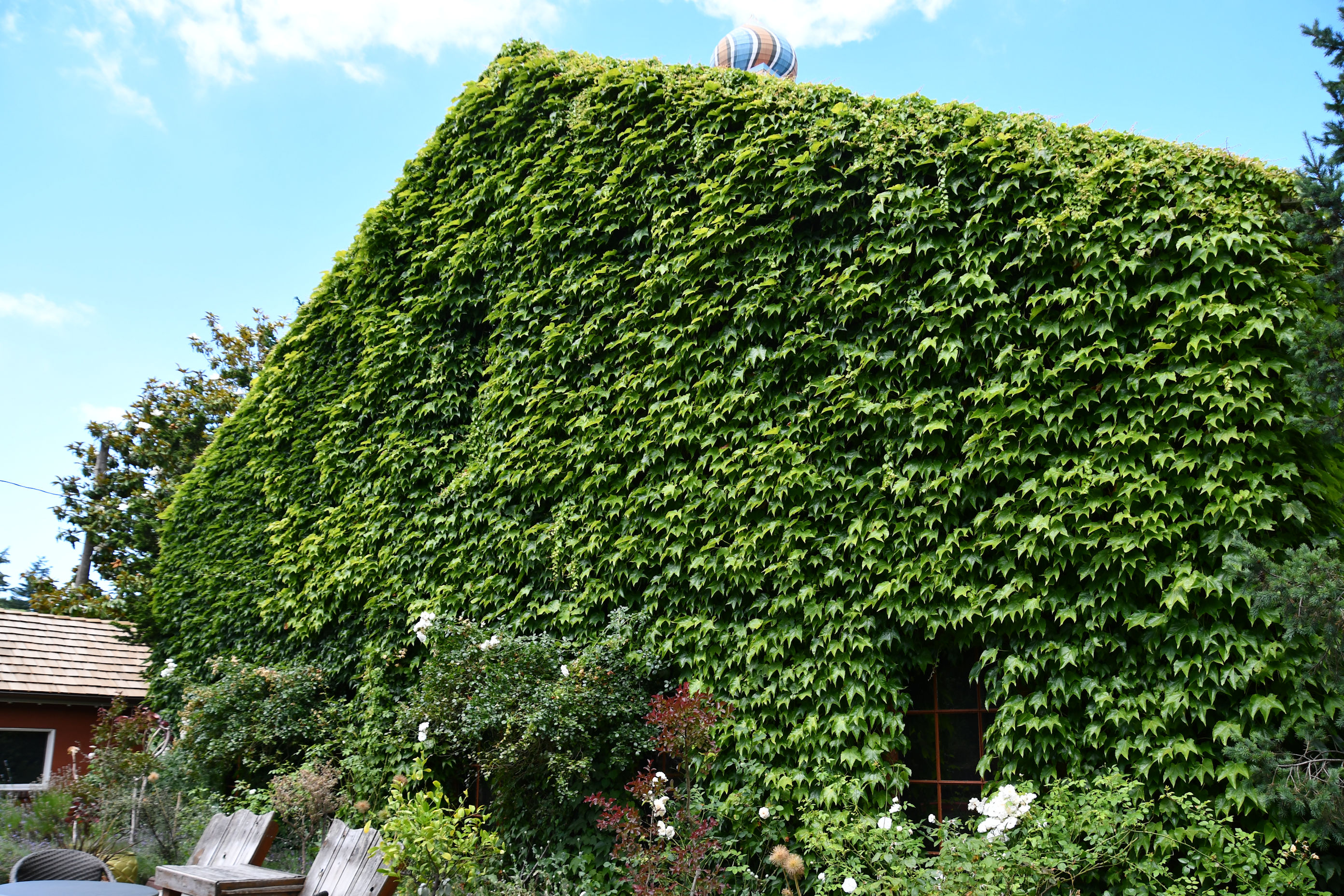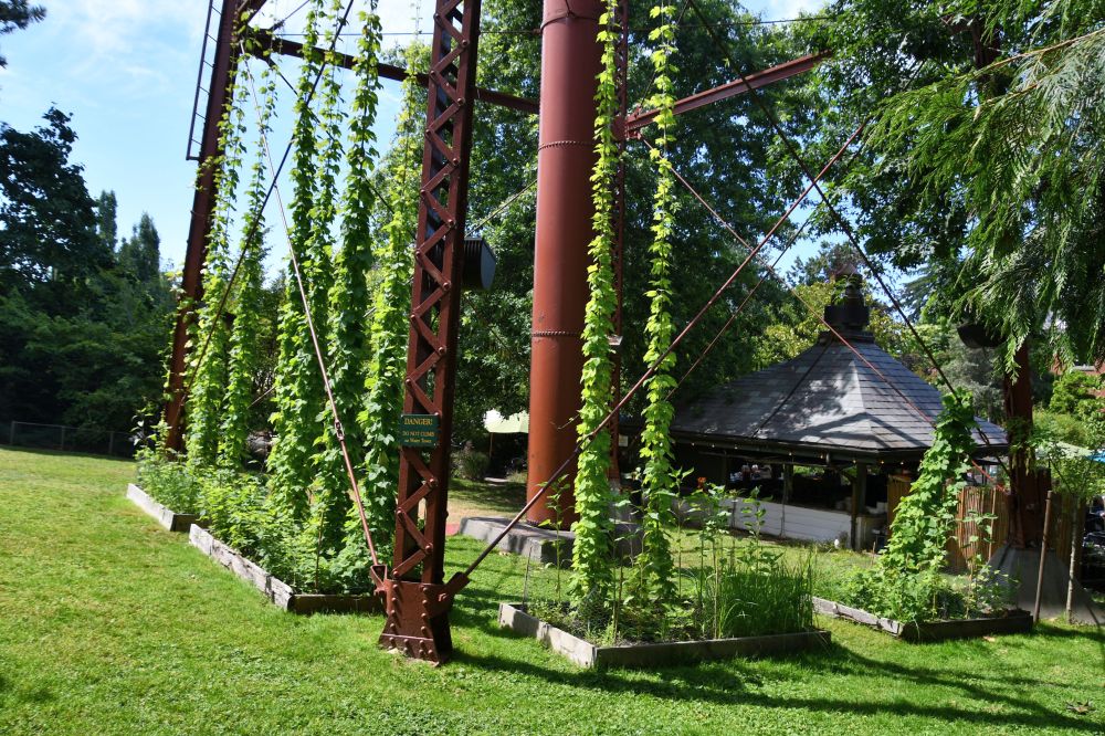The water tower is an eye-catching characteristic of the property, seen from practically anywhere. It’s made more lovely with strings of hops climbing it.