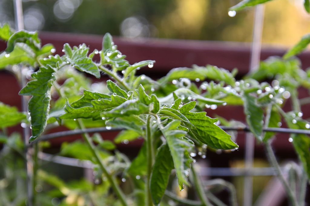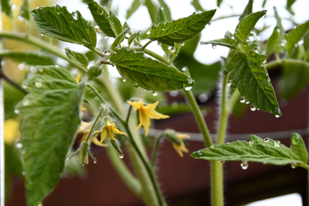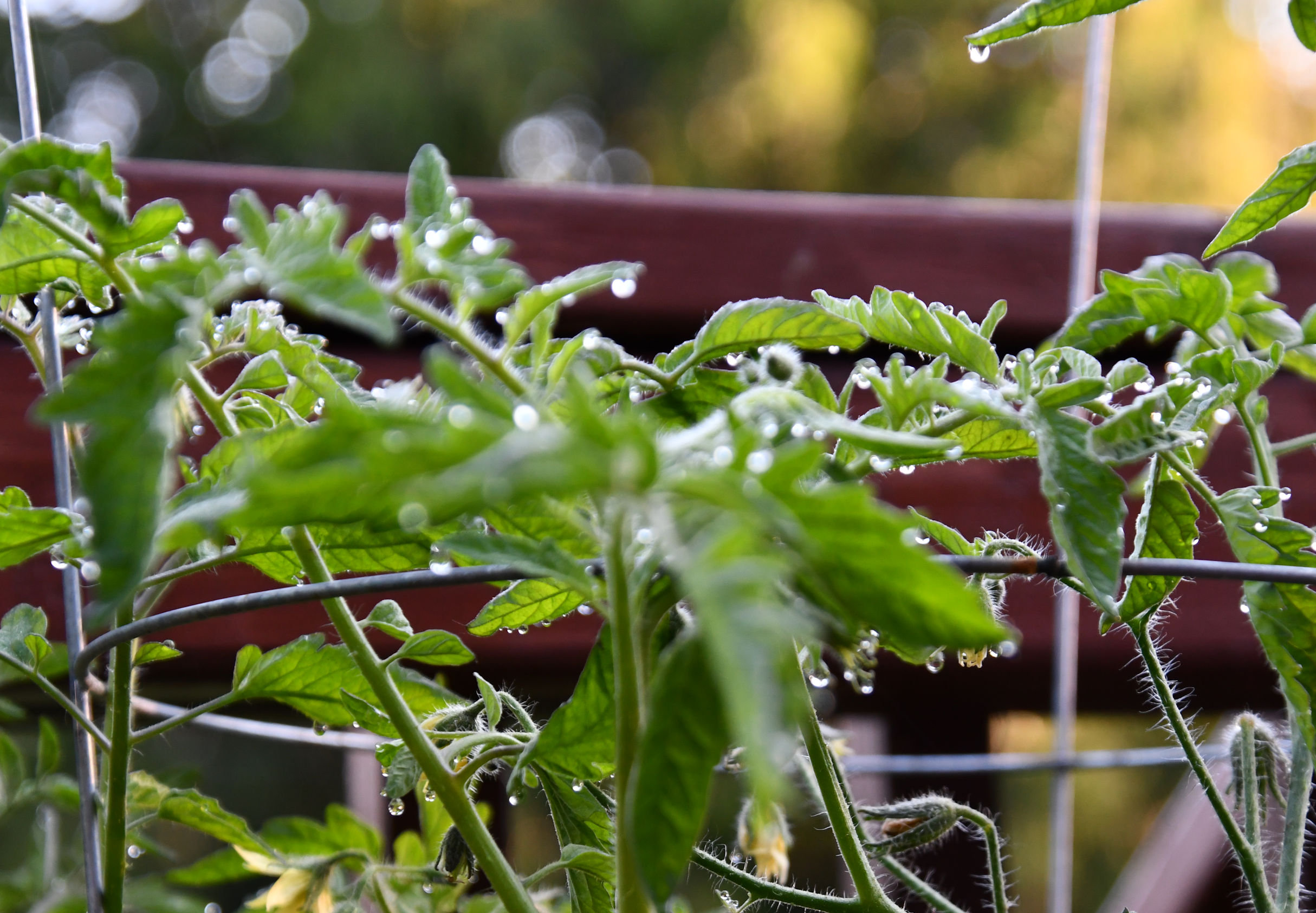 I went out to pick lettuce, since it’s better to do that when it’s cool. Then I inspected all the other plants just because they are my babies and I can’t help myself. I looked up and saw the dew and ran immediately for my camera.