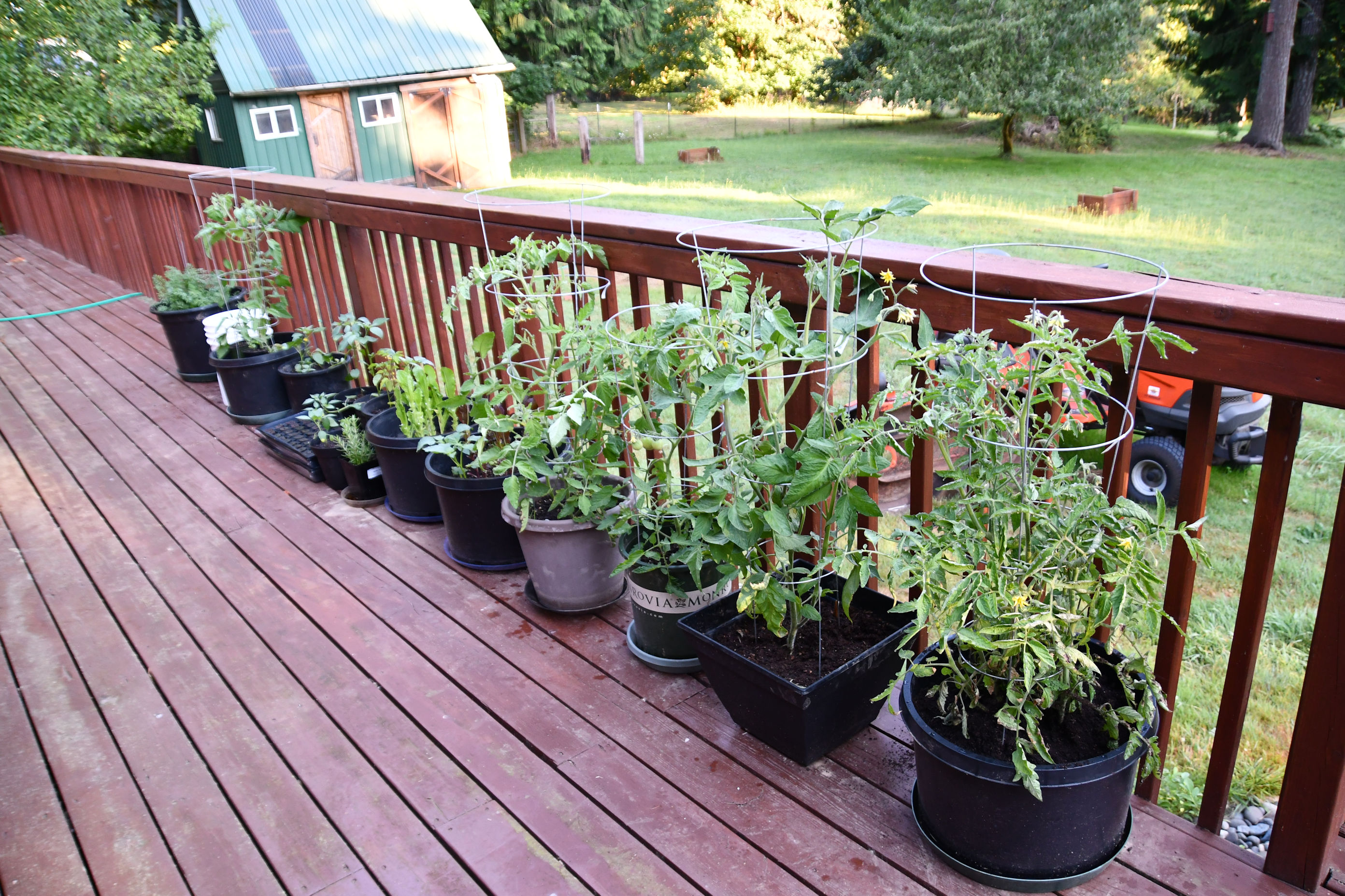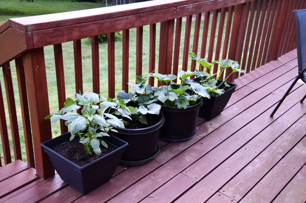 I have my vegetable garden on my deck so that the deer don’t eat it. This year got off to a very cool, wet start, so my deck garden is only now really showing growth. I’m afraid I’ll have a super short tomato and squash season, if the rains start on time. Ah well, nothing I can do.