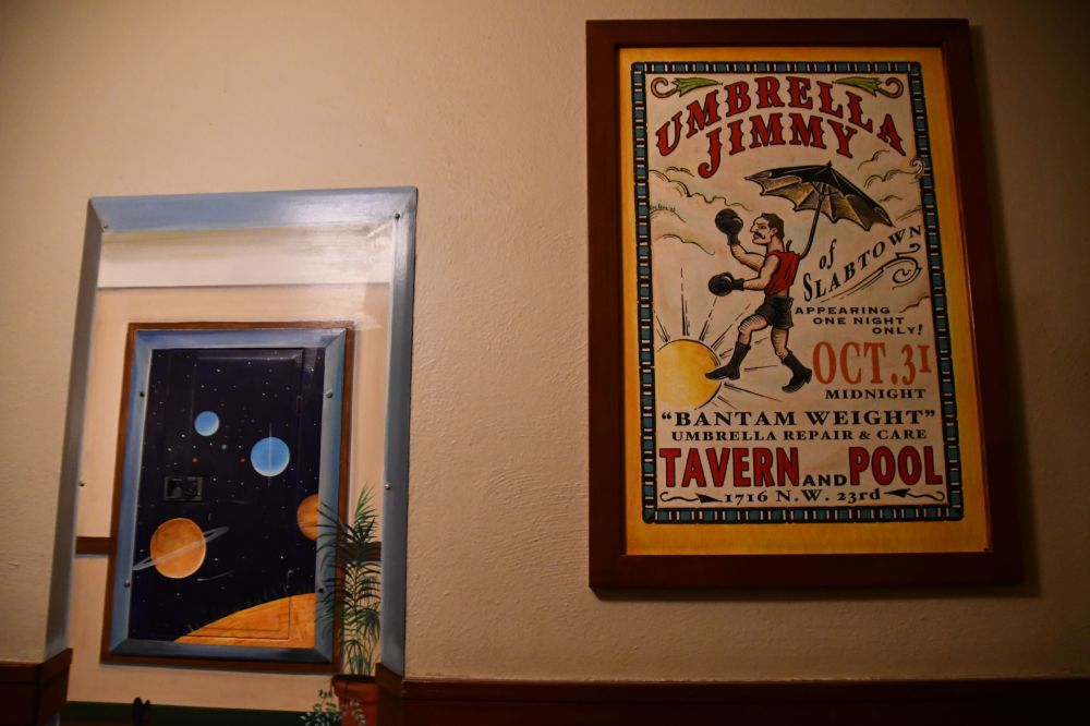 We did not leave the first and second floors of the main building, but it was enough to tell quite a tale of the hardships of the early days and the plans for expansion. “You need to know that the Edgefield is never done,” she said. “There are always improvements ongoing, new developments, revisions, expansions. The pattern you see painted on the wall here? That is brand new. I haven’t seen that before.” This building is where the dormitories were for poor farm residents, and later for nursing home residents. Today it holds most of the guest rooms, the Black Rabbit restaurant, the Ballroom, and Lucky Staehly’s Pool Hall. The artwork on the walls was accomplished by 25 local artists.