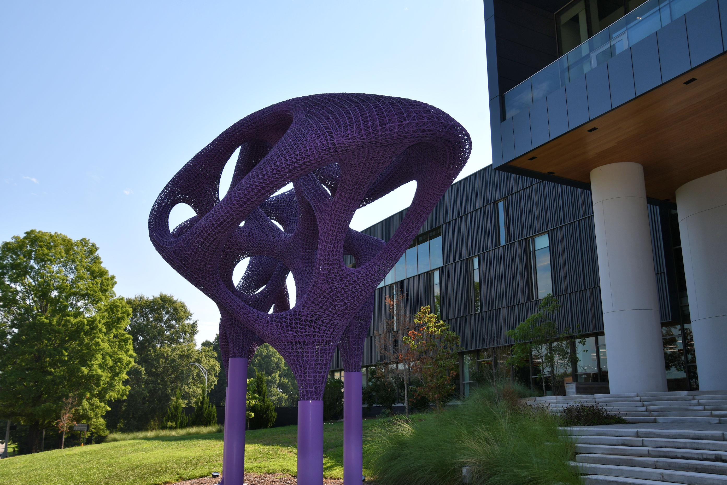 Driving into town from the airport the day before, I had spotted this thing and was happy to find it again. This sculpture is outside the public library. It was 3D printed and the most fabulous shade of purple. Look at that amazing texture.