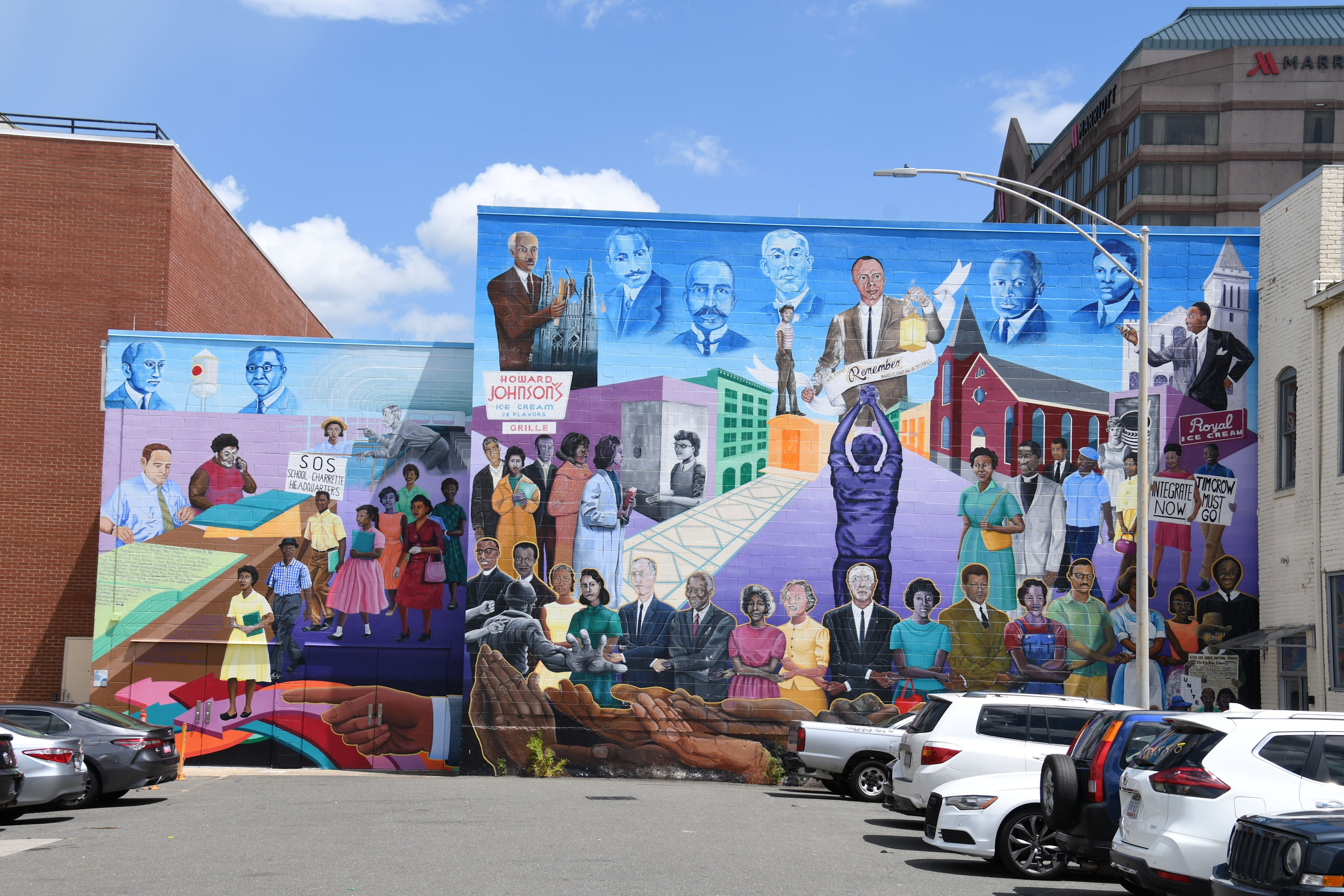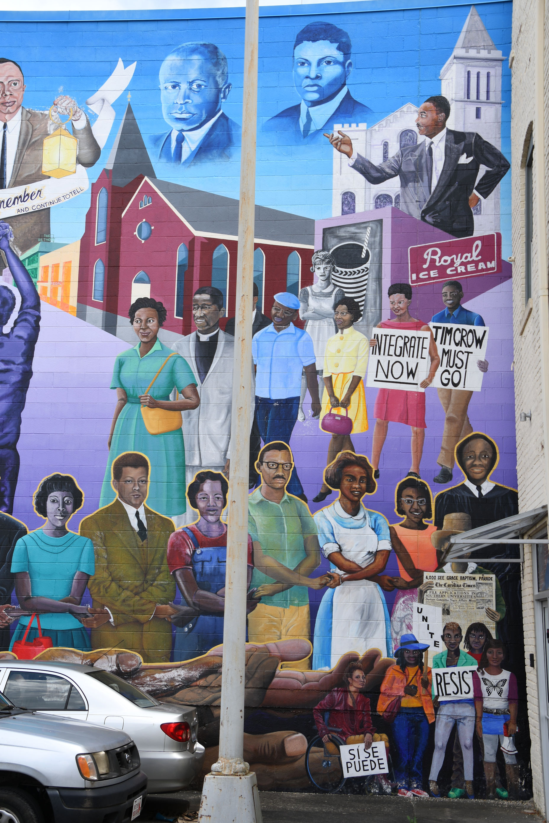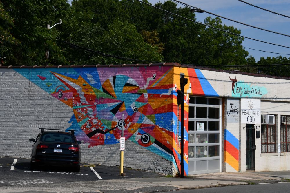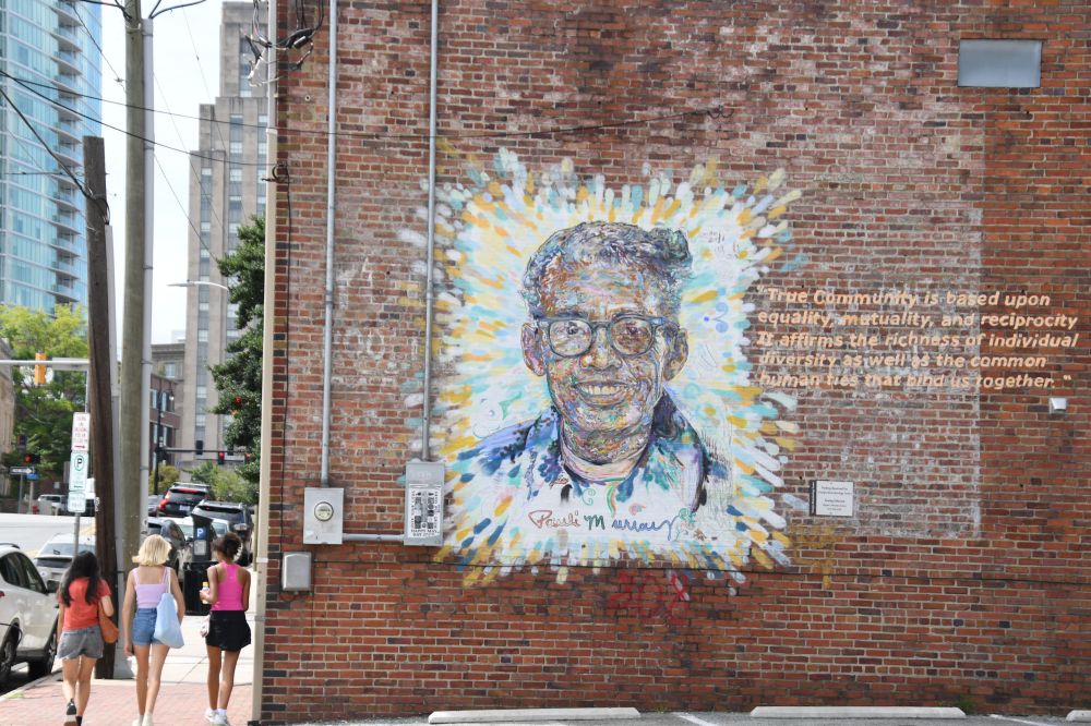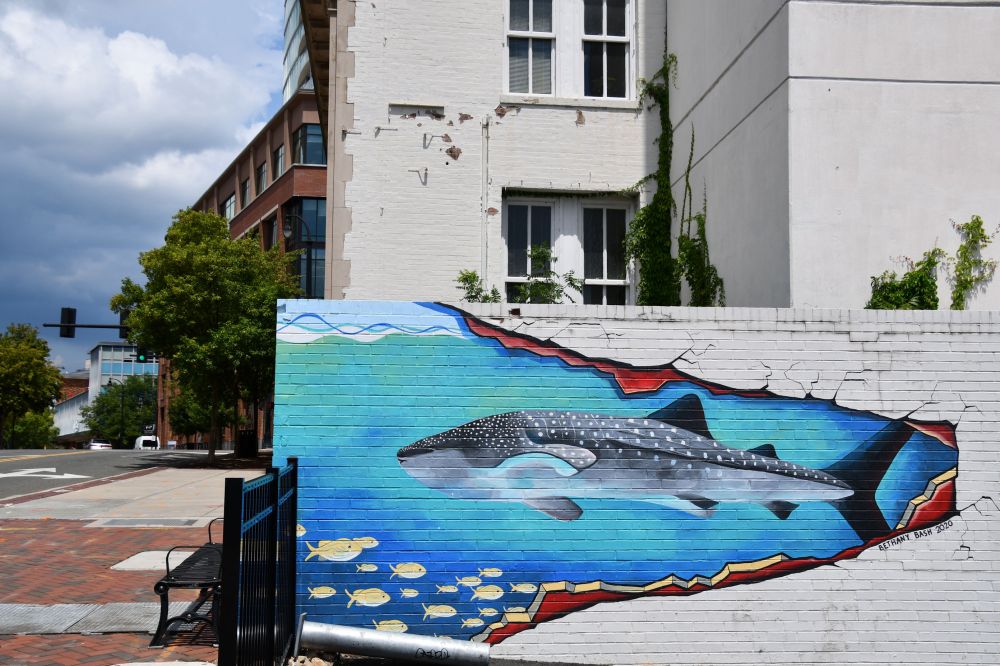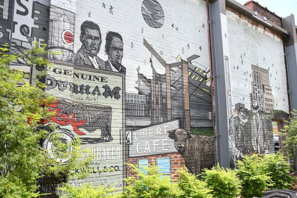 It’s hard to miss the wall art in Durham, North Carolina. Even if it’s not your thing (and it is my thing), you can’t help but notice. The visitor’s center has these great little booklets with a lot of murals mapped out. I programmed a walking route into my phone GPS and enjoyed my tour of the city that way. Understand that I found much more art than what was covered in the booklet. Sadly, two of the murals I sought have disappeared beneath new construction, so my guess is that the booklets must repeatedly be out of date due to new art and human progress.