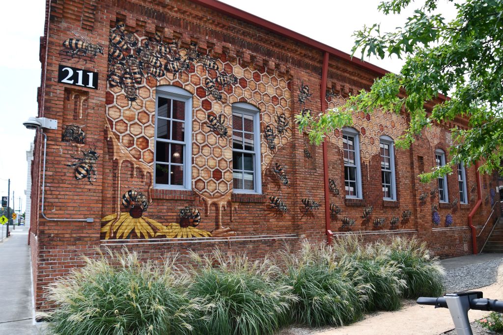One fun thing in the ATC is the headquarters of Burt’s Bees, Inc. I did not know it was here before I visited, and that was a fun discovery. I have been using their products for years, and enjoyed the beautiful headquarters building with the exceptional mural on the side. I also got a kick out of Burt’s old home (he died in 2015), which was converted from a turkey coop when he lived in Maine.
