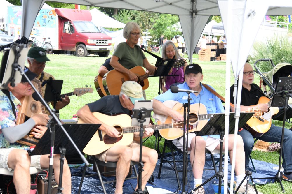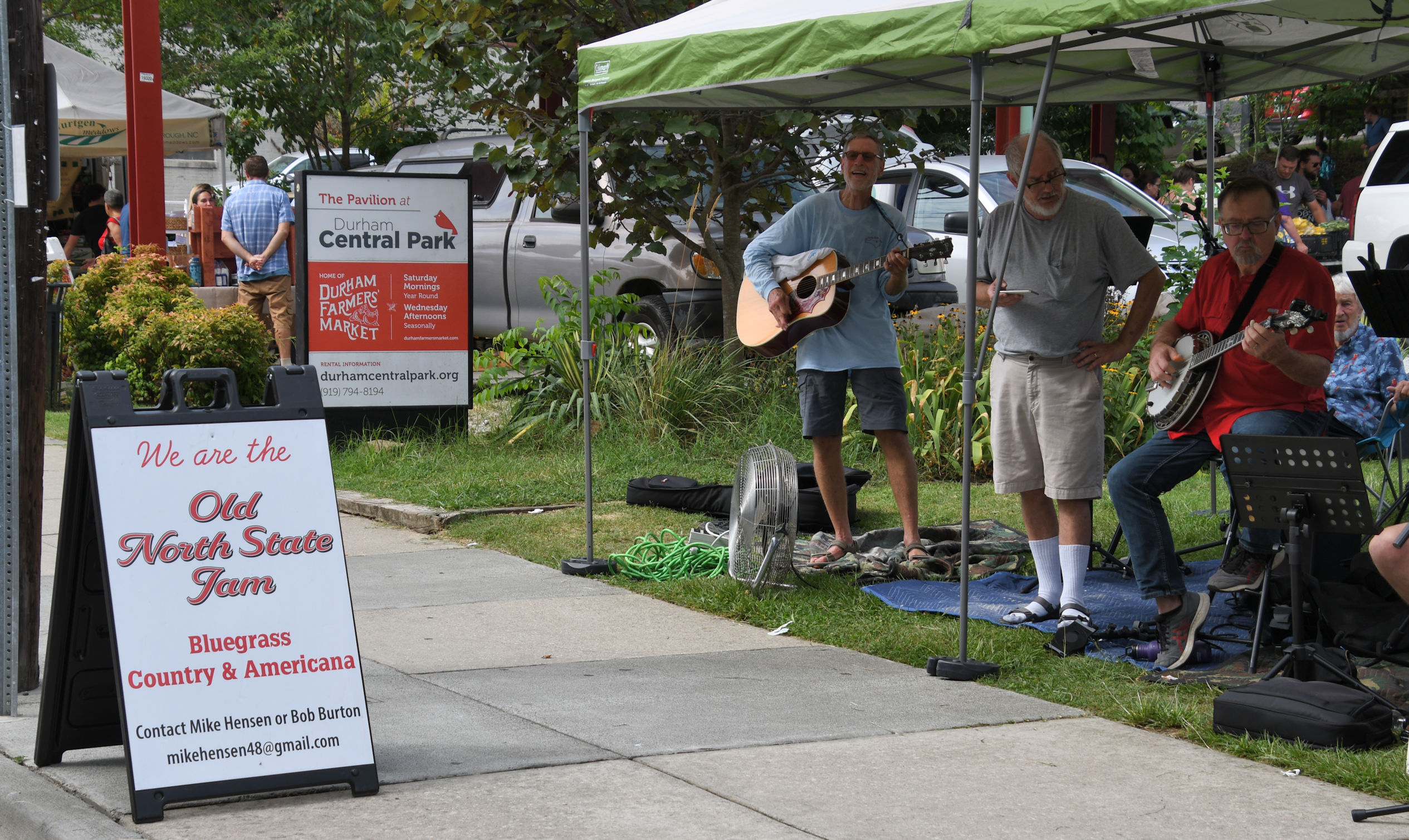 Right in the middle of everything was a live band that played favourites and suited the market perfectly. I slowed to take a couple photos while I listened. The Old North State Farm band was entertaining people who shopped, and also people who slowed down or sat down to rest. They play traditional American music, like bluegrass and country.