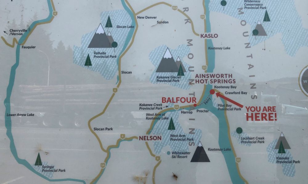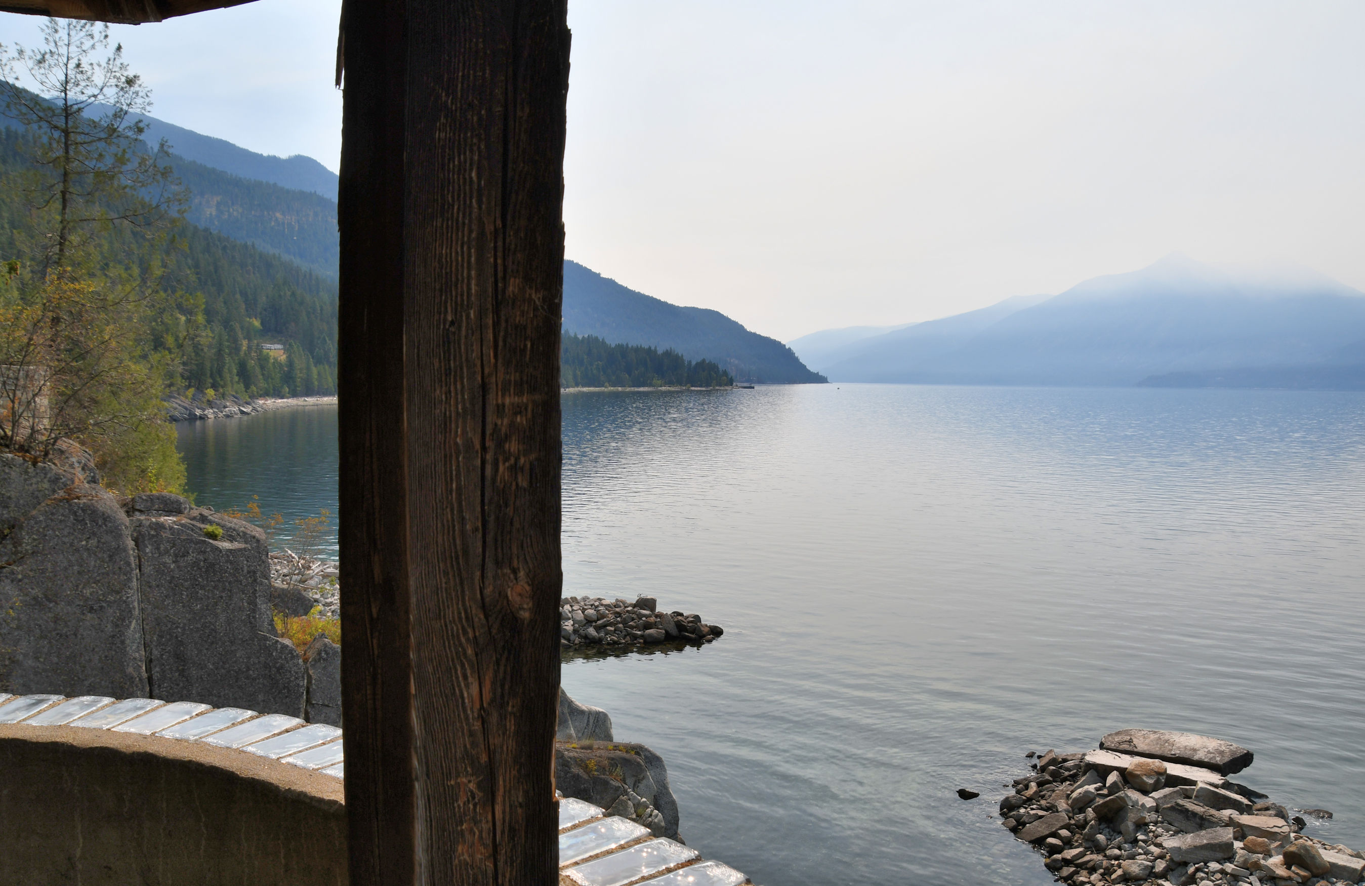 I had been driving all day long after not enough sleep and the trip had taken much longer than we anticipated, mostly due to the ferry. I can’t believe I didn’t take a single photo of the hotel, the room, the town, or anything there. I must have been tired! It was pitch black outside when we were finally done packing and it made me grumpy that we had not had a chance to explore Slocan during daylight. Our host had told us about a beautiful beach within easy walking distance, and we used the lights on our cell phones to pick our way over there and check it out in the dark. We couldn’t see much in the dark, but the night and the water were warm, and it was quiet and peaceful and that made it worth the effort. After letting the peace of the quiet mountain town seep into us, on the shores of a pristine lake, we walked back to our room and went to sleep.