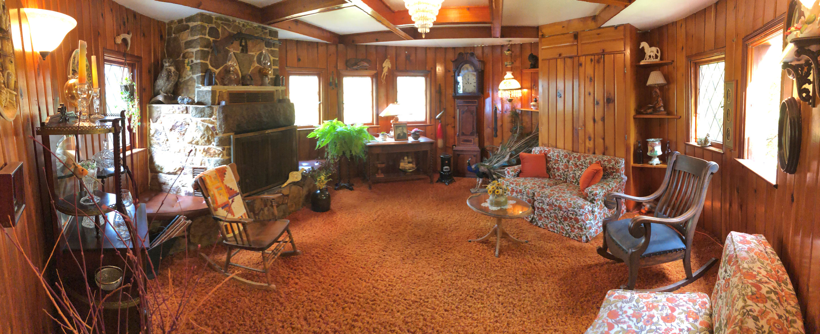 It’s a brilliant environmental effort from a time when people were not as thoughtful about keeping trash out of the landfills. On the flip side, the Browns populated their gardens with dozens of cheesy Snow White and the Seven Dwarves sculptures, plus dozens of generic garden gnomes and goofy bigfoot paving stones, and ceramic rabbits and squirrels and painted rocks in bright gaudy colours. In other words, they intentionally filled their property with stuff I think is better suited for a landfill, ha ha! I tried to keep most of that crap out of my photos, but if you look at the first two views of the home above, you’ll see what I mean. Aside from all the knick knacks, the multiple gardens and courtyards and paths were quite beautiful.