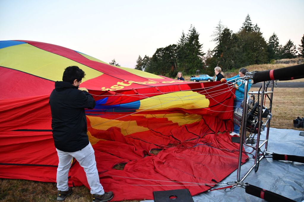 It has been a lot of years since then and I wanted to go up again, so I bought tickets for two from Vista Balloon Adventures for Pedro for a Christmas gift. I added a note that I hoped he would invite me, ha ha! It’s nice not to be so poor anymore, and we seem to have adventures all the time. He chose the date of September 25, and we woke in the dark and arrived before dawn at the airstrip in Newberg, Oregon. Hot air balloons lift off at dawn because that’s when wind conditions are best.