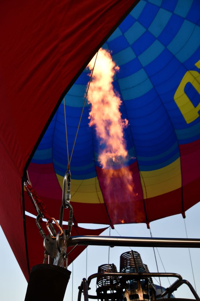 After a good amount of air has been forced into the balloon, the burners are turned on, to heat the air. This is what makes the balloon rise, and soon it was upright.