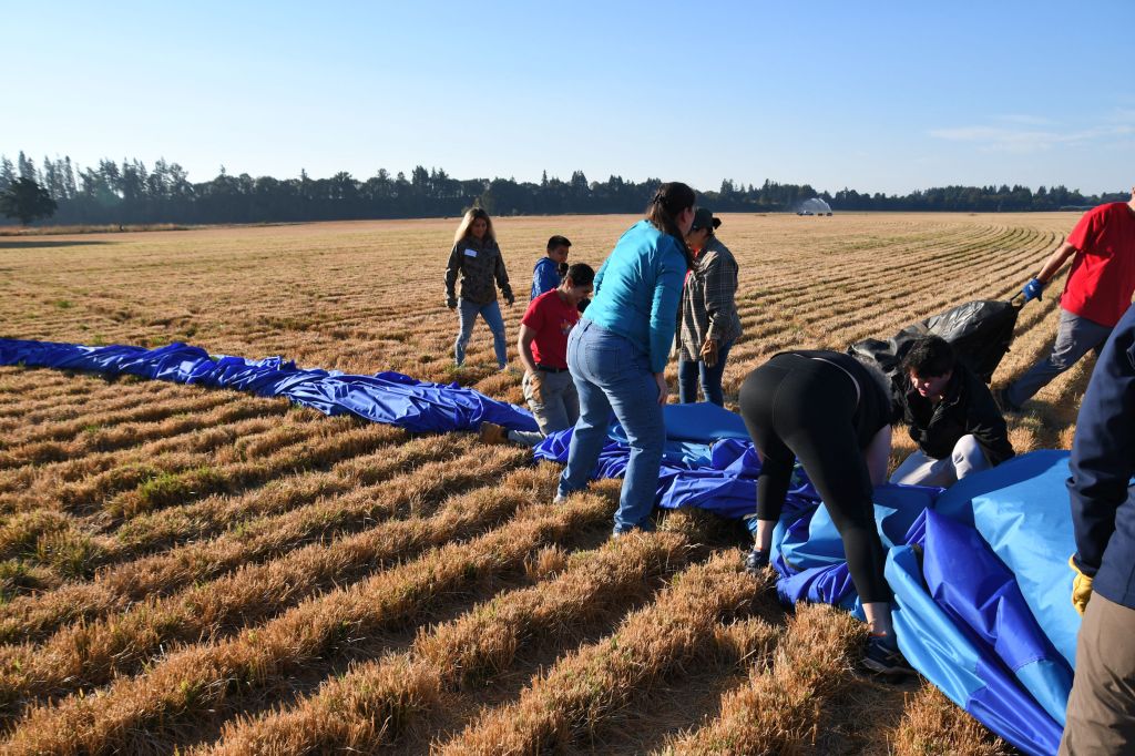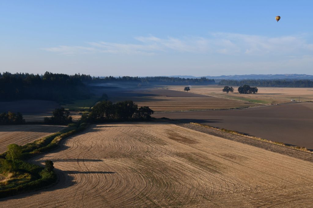 After an hour, it was time to find a landing spot. As you can see from the photos, the Willamette River valley is an agricultural area. The company has formed relationships with many of the landowners out here and the farmers let them know which fields are ok to land in at which times of year. This late in the season there is a lot to choose from because a lot has been harvested.