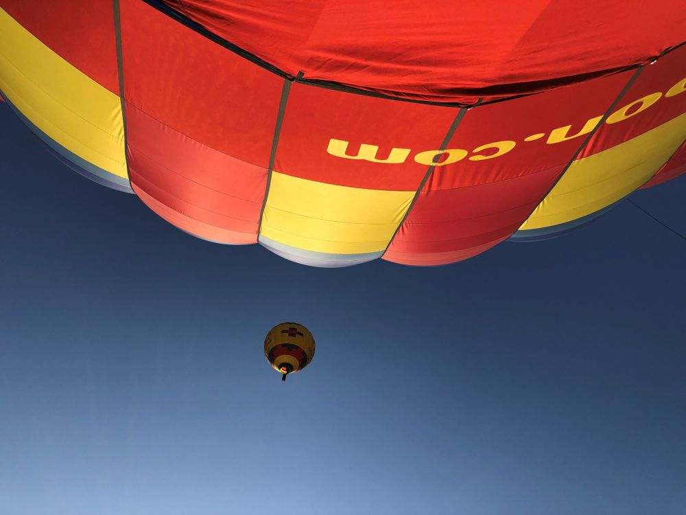 One thing I find amazing (but logical when I think about it), is that there is no wind in a balloon. If the balloon rises into an atmospheric layer that has higher wind, you’ll feel a little breeze only until the balloon catches up and is flowing with the wind, then it’s calm again. The basket is very heavy, sturdy, and stable. It is an extremely peaceful way to see the world from above. Most of the time it’s totally silent, except for the murmurs of delighted passengers. And then the pilot turns on the burner to heat the air, and that is very loud! It’s also hot, so tall people need to wear a hat. Pedro and I were not affected, ha ha.