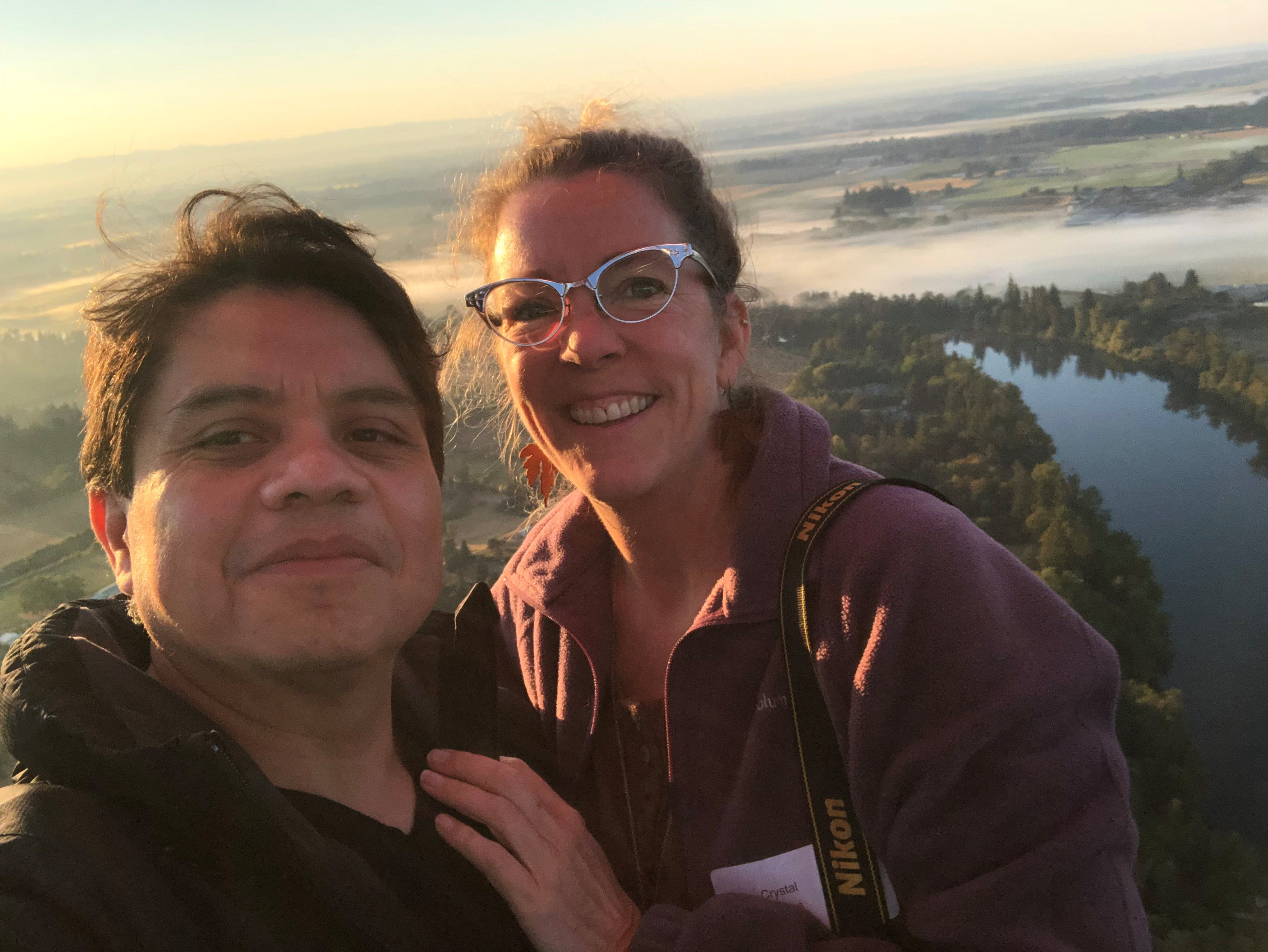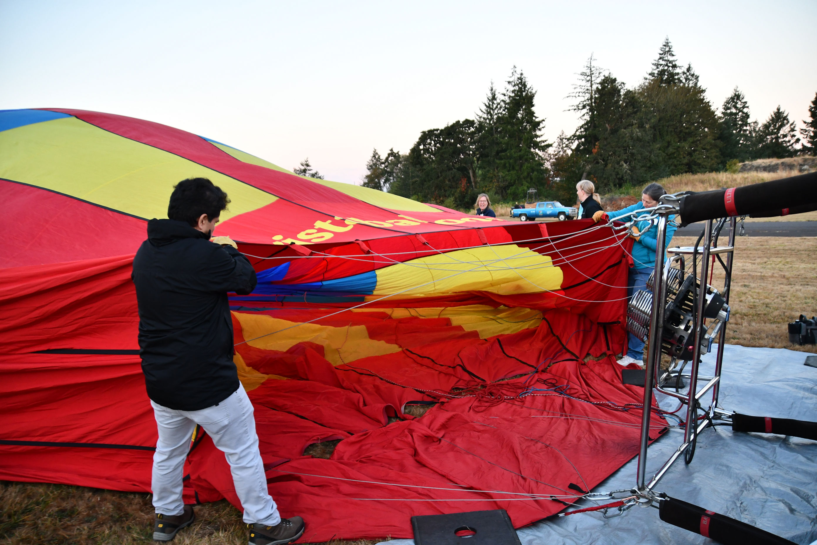 It has been a lot of years since then and I wanted to go up again, so I bought tickets for two from Vista Balloon Adventures for Pedro for a Christmas gift. I added a note that I hoped he would invite me, ha ha! It’s nice not to be so poor anymore, and we seem to have adventures all the time. He chose the date of September 25, and we woke in the dark and arrived before dawn at the airstrip in Newberg, Oregon. Hot air balloons lift off at dawn because that’s when wind conditions are best.