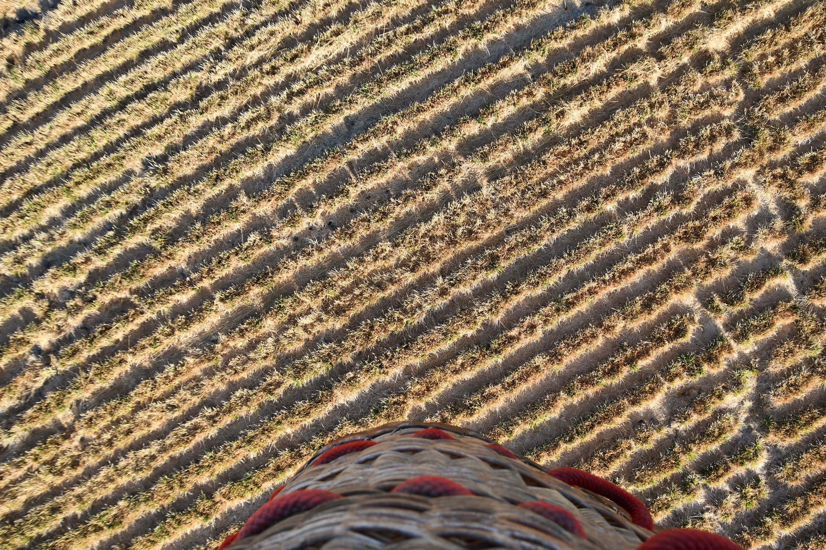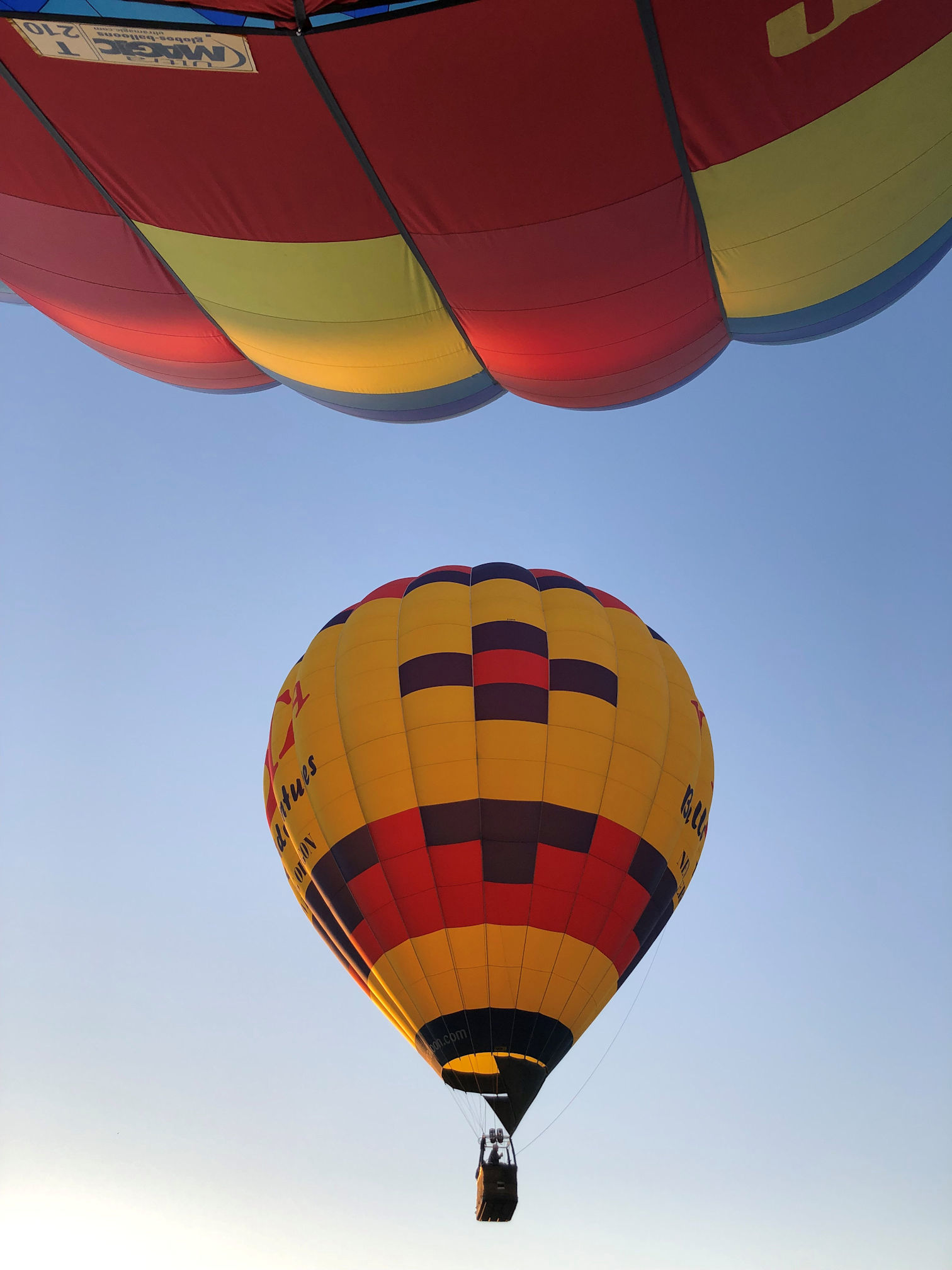 One thing I find amazing (but logical when I think about it), is that there is no wind in a balloon. If the balloon rises into an atmospheric layer that has higher wind, you’ll feel a little breeze only until the balloon catches up and is flowing with the wind, then it’s calm again. The basket is very heavy, sturdy, and stable. It is an extremely peaceful way to see the world from above. Most of the time it’s totally silent, except for the murmurs of delighted passengers. And then the pilot turns on the burner to heat the air, and that is very loud! It’s also hot, so tall people need to wear a hat. Pedro and I were not affected, ha ha.