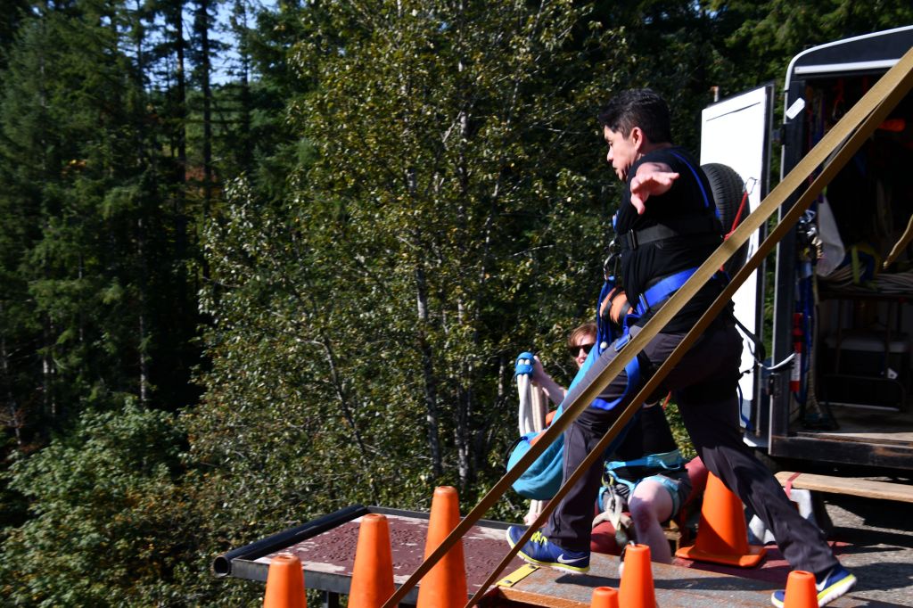 Most of the new people jumped once, but there is an option to jump twice for a big discount on the second jump. It’s easy for the company to let you jump a second time, because you’re already all hooked up and standing on the platform after your first jump. Pedro knew in advance he would want to jump twice.
