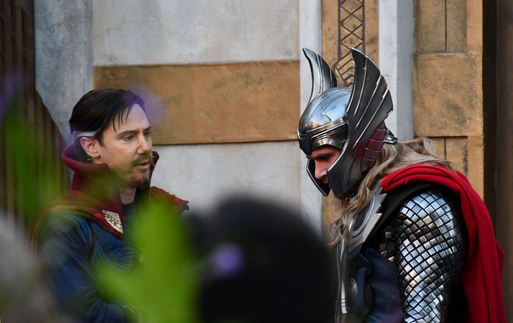 Dr. Strange is condescending to Thor, who soon leaves the scene. Both are characters from Marvel comics. Dr. Strange was performing a skit of some kind, but it was behind a hedge and we couldn’t see very well and there were too many people to get closer.