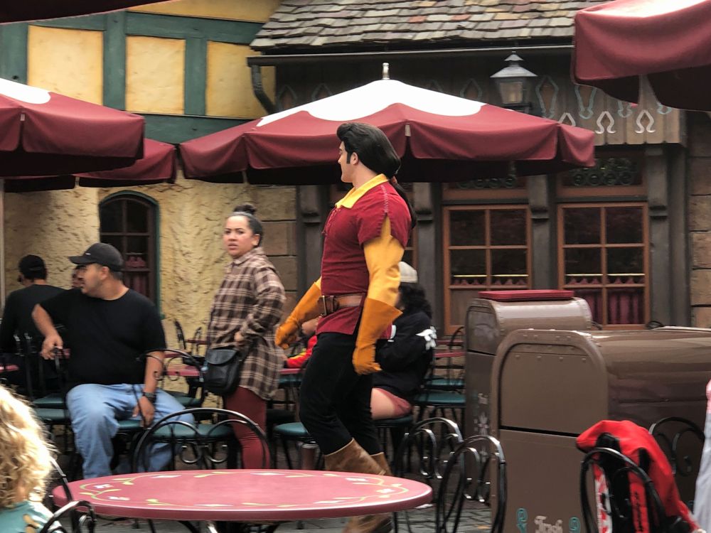 Here’s Gaston, from Beauty and the Beast, looking away. We were sitting at one of these tables and he burst through a doorway right next to us, struck an arrogant pose and waited for applause or a gasp or something. I was too astonished to move. He quickly left in search of better fans while I scrambled for my camera.