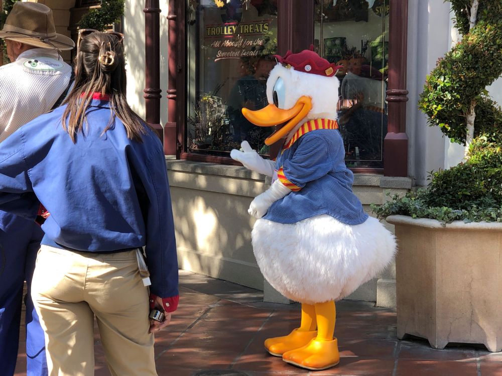 I am going to show you all the Disney celebrities I came across in our only four days in the two adjacent parks. Disney calls them cast members, but it calls all its employees “cast members” no matter what role they fill, if it is checking your ticket at the gate, selling you an ice cream, being a conductor on the train, or dressing up as a character and playing the part. I am only including the ones that walked among the people and interacted. There are life-sized, animated, excellent representations of celebrities that are fixed in place and have pre-recorded scripts, like the awesome C3PO who chats at you while you wait in line for Space Mountain, but I’m not including those today.