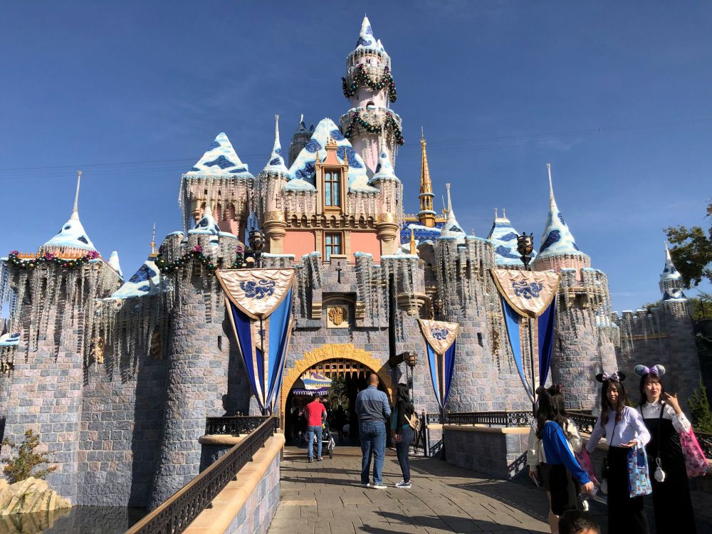 Sleeping Beauty’s Castle always looks good. Here, the kids pointed out how the winter decorations are going up. You can see icicles hanging down, and some Christmas balls, as well as fake snow.