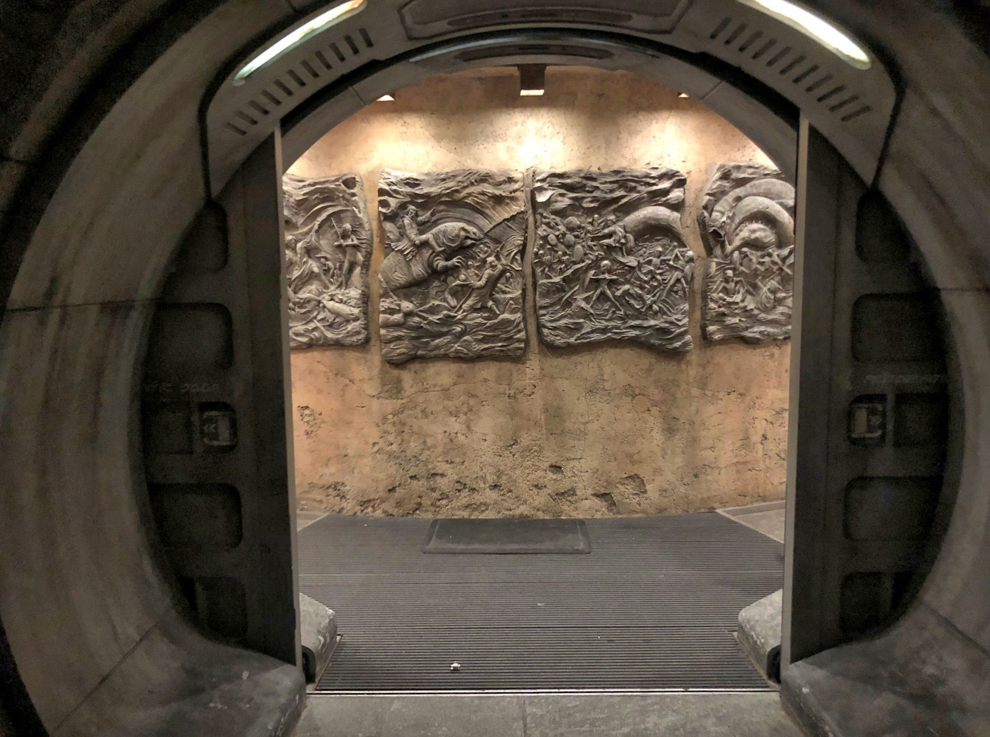 Here’s one last video for fun. While I was looking for a bathroom, I spotted this glass container on a wall that had some bubbles coming up. A small child was eagerly watching it, and said “There’s something in there!” The kid was right. Up popped a dianoga. You may remember one of these from the garbage compactor in Star Wars: A New Hope, when Luke, Laura, Han, and Chewbacca all got trapped in it.