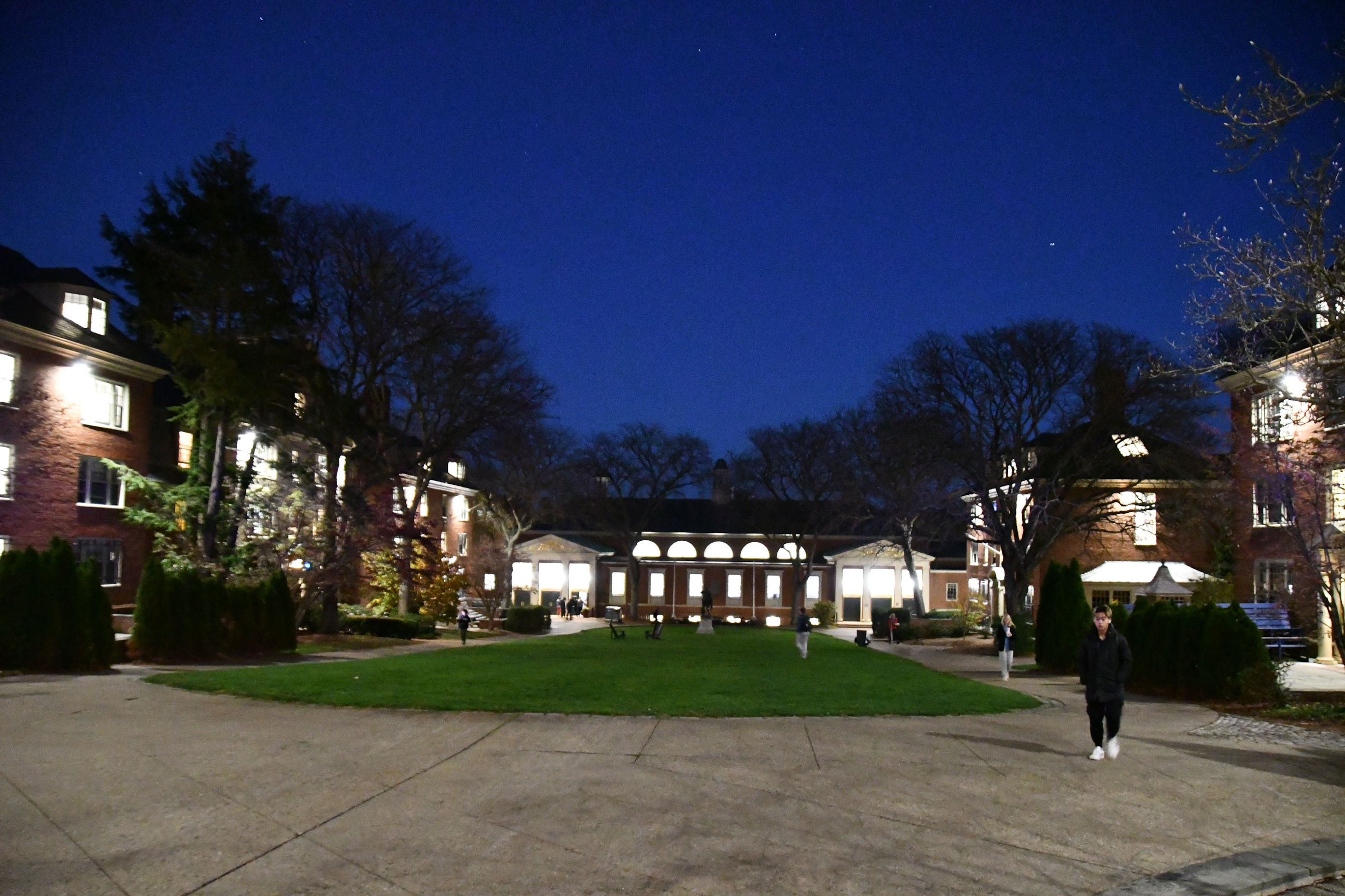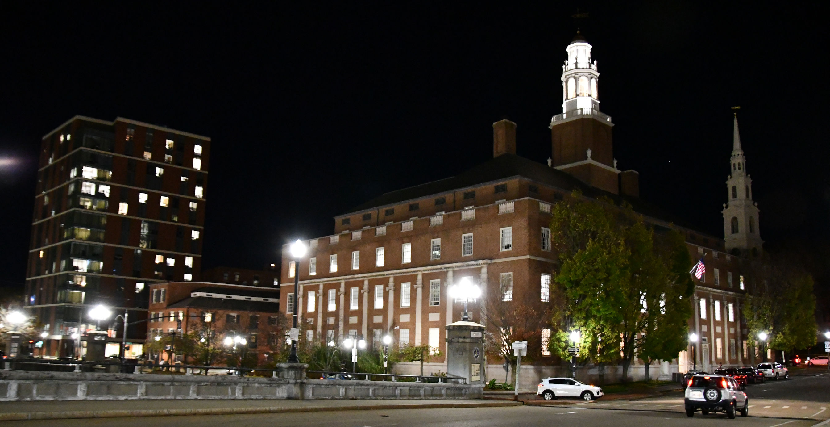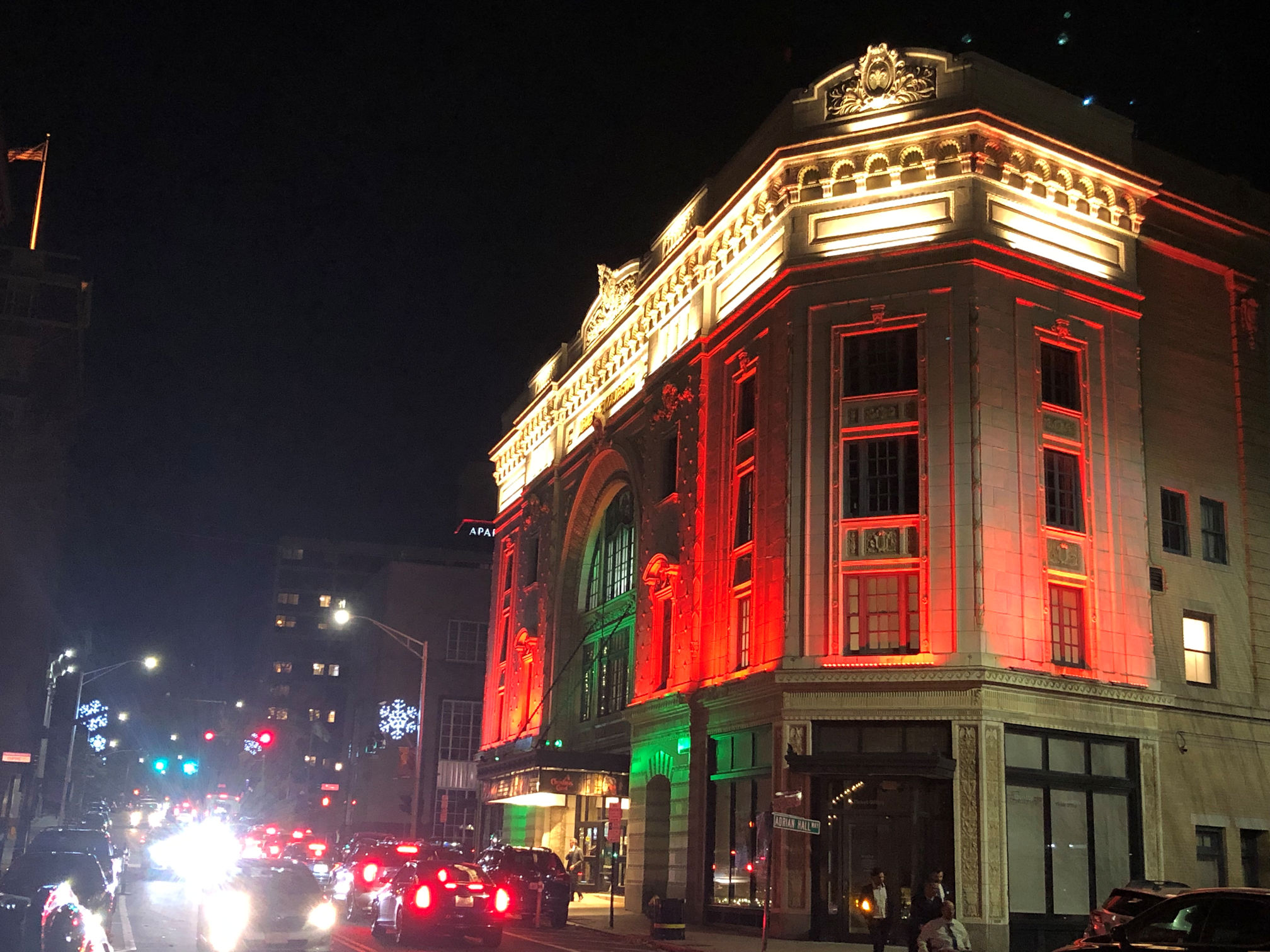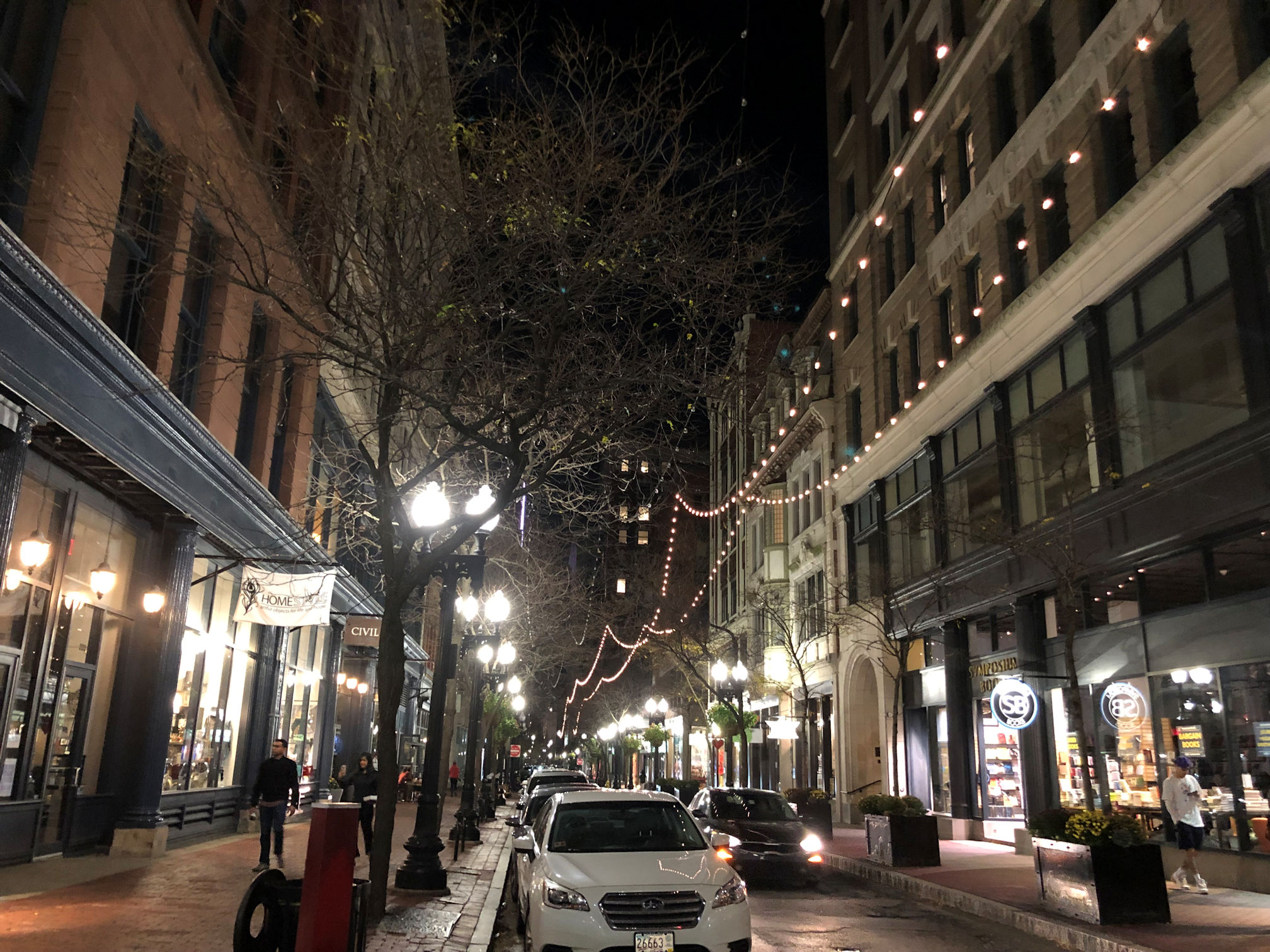 We had now returned to what seemed to me like the center of town. After passing the federal building, we came to Burnside Park, which holds the fountain for Caroline, built by her Italian husband (mentioned above). Adjacent to that park is Biltmore Park with an ice-skating rink. Stretching beside both of those is Kennedy Plaza passenger terminal, filled with many people standing in shelters and waiting for their busses. I don’t have photos of any of it because it was too dark, and the images didn’t look very good. City Hall, and the fabulous historic Biltmore Hotel (boringly renamed after its new owner and now called Graduate Providence) are at the far end, opposite the federal building.