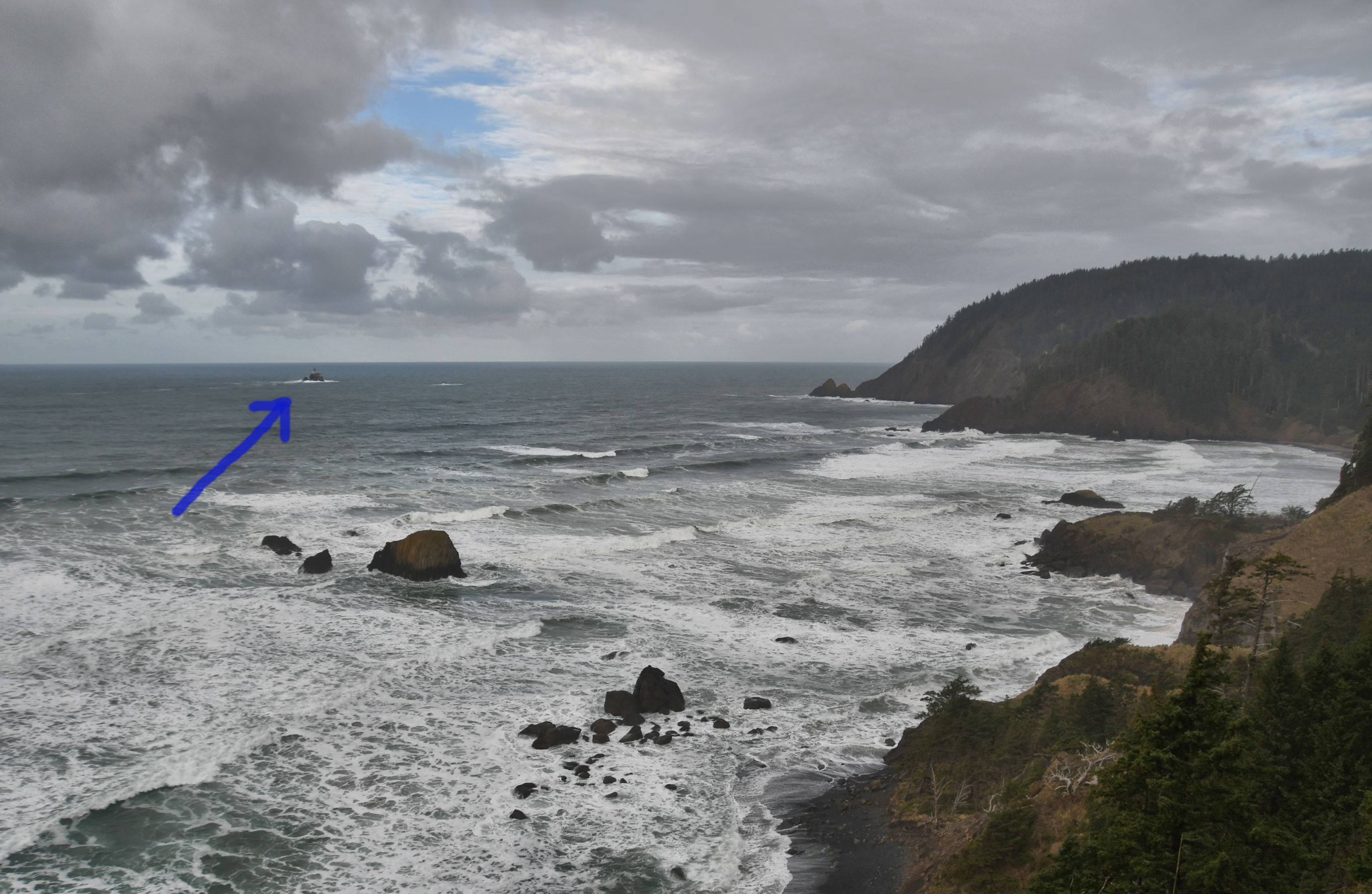 The arrow points to the Tillamook Lighthouse. I include this photo to show you exactly where this lighthouse is in relation to our hike. I’ll include better photos of it later.