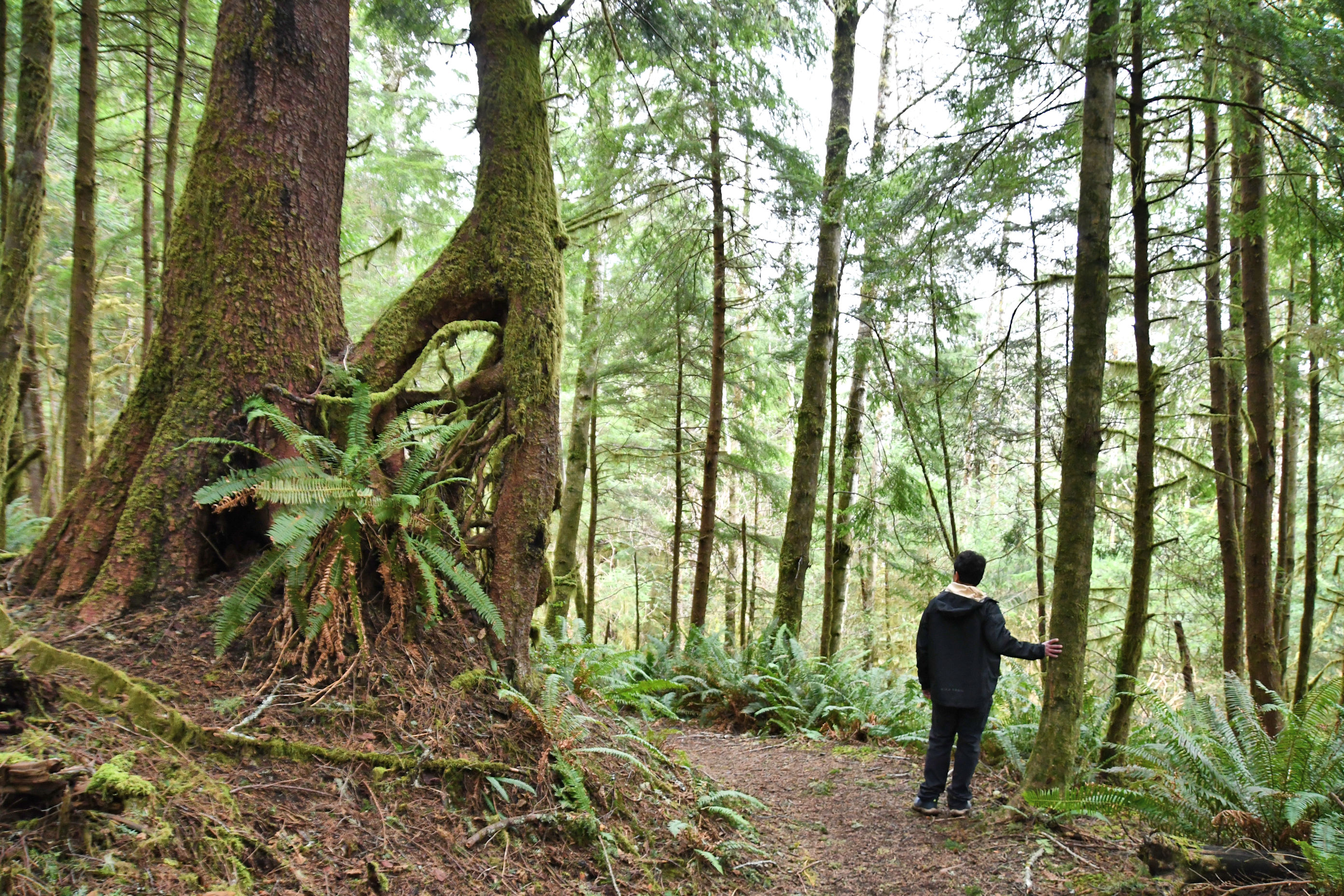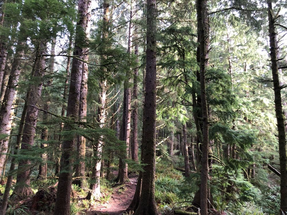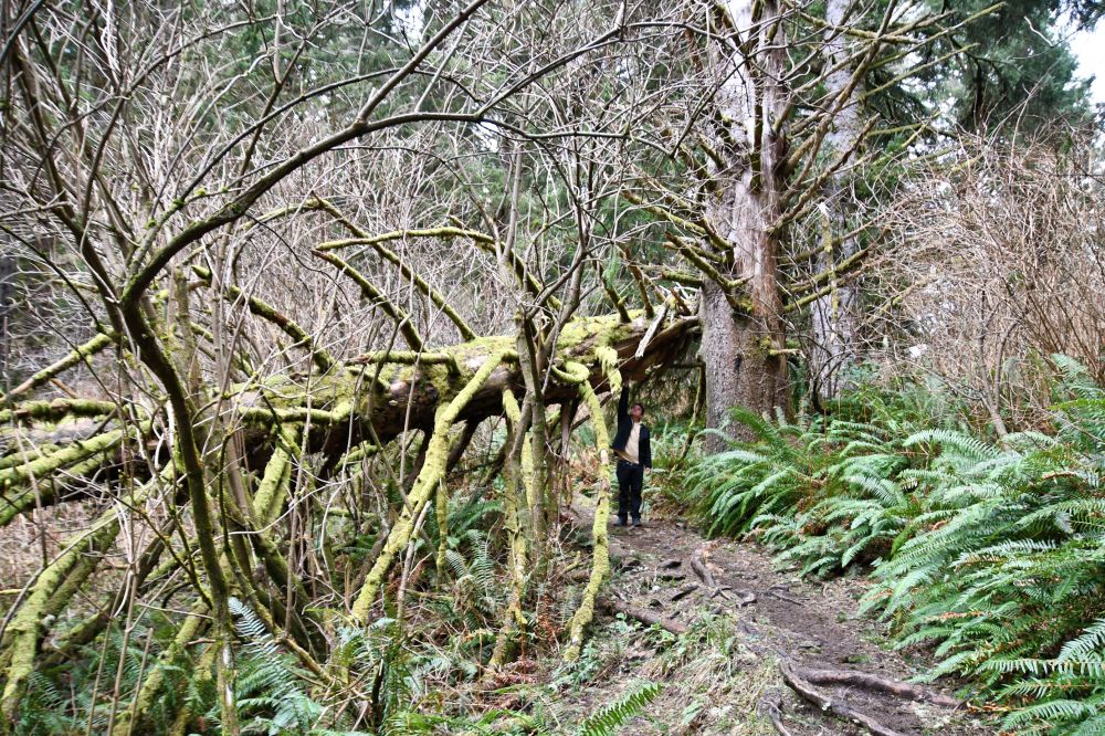 2. And smells! There was one place where a big Hemlock tree with lots of branches and fresh green needles had crashed across the trail. Hikers had to push through branches, holding onto and walking on needles. About the same time, Pedro and I said to each other, “It smells like Christmas!” ha ha There was also the smell of the sea, that I didn’t get so much in forest, but was surrounded by it when we walked on the beach.