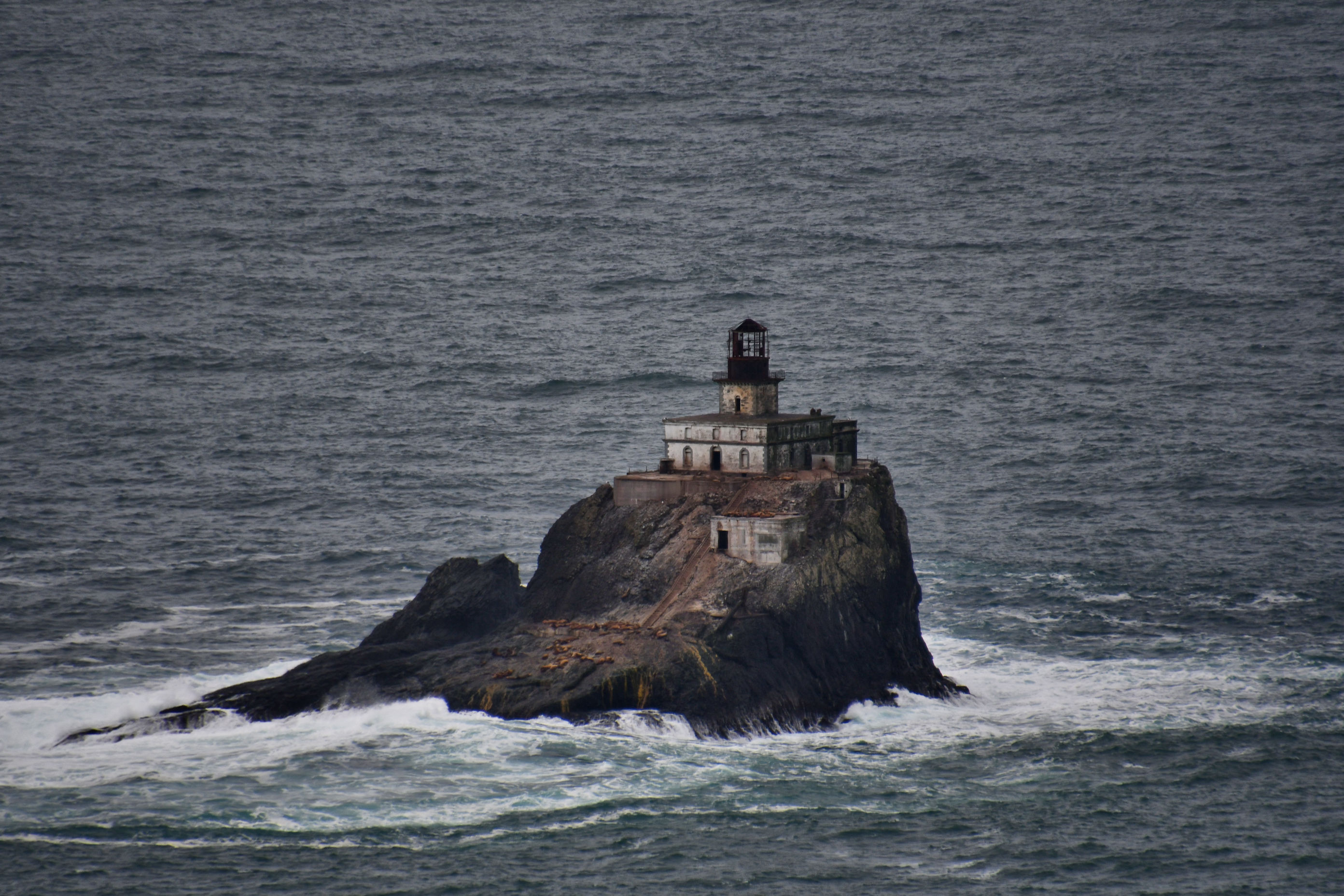 The Tillamook Lighthouse operated from 1881 to 1957 and earned herself the nickname of Terrible Tilly due to the extreme difficulties in getting to the post, maintaining the lighthouse in good functioning order, and the difficulties experienced by lighthouse keepers assigned here, but it was especially due to the ferocious storms that batter the island to this day. It is 62 feet tall and sits atop a rock nearly 100 feet in elevation, 1.2 miles west of the shore, and on more than one occasion storms and sea water bashed structures into the water. Despite all this, some keepers worked there many years. At the time operations ceased, it had been the most expensive lighthouse in the country to maintain and had been made obsolete by modern radar.