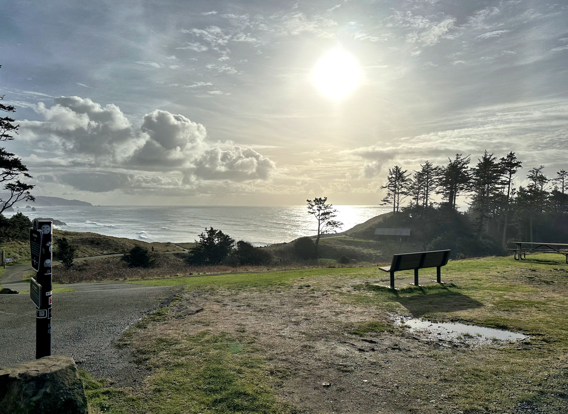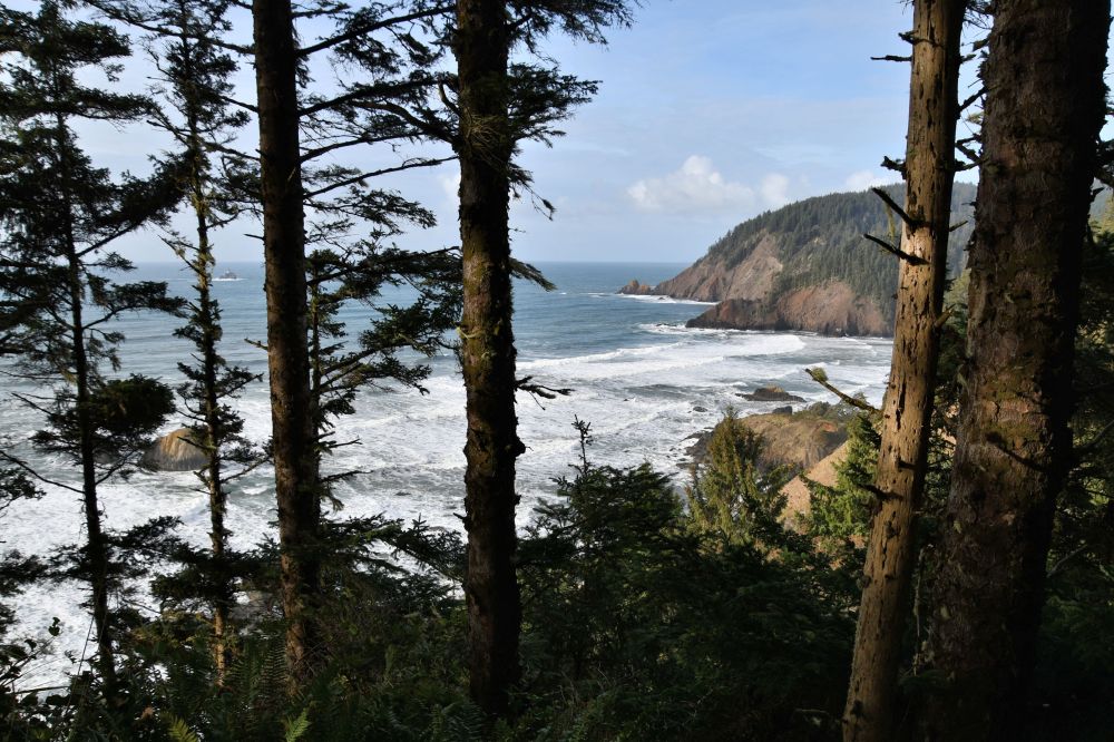 That bit of land is called Tillamook Head. It’s pretty in the sunshine. You can see the lighthouse between trees, too.