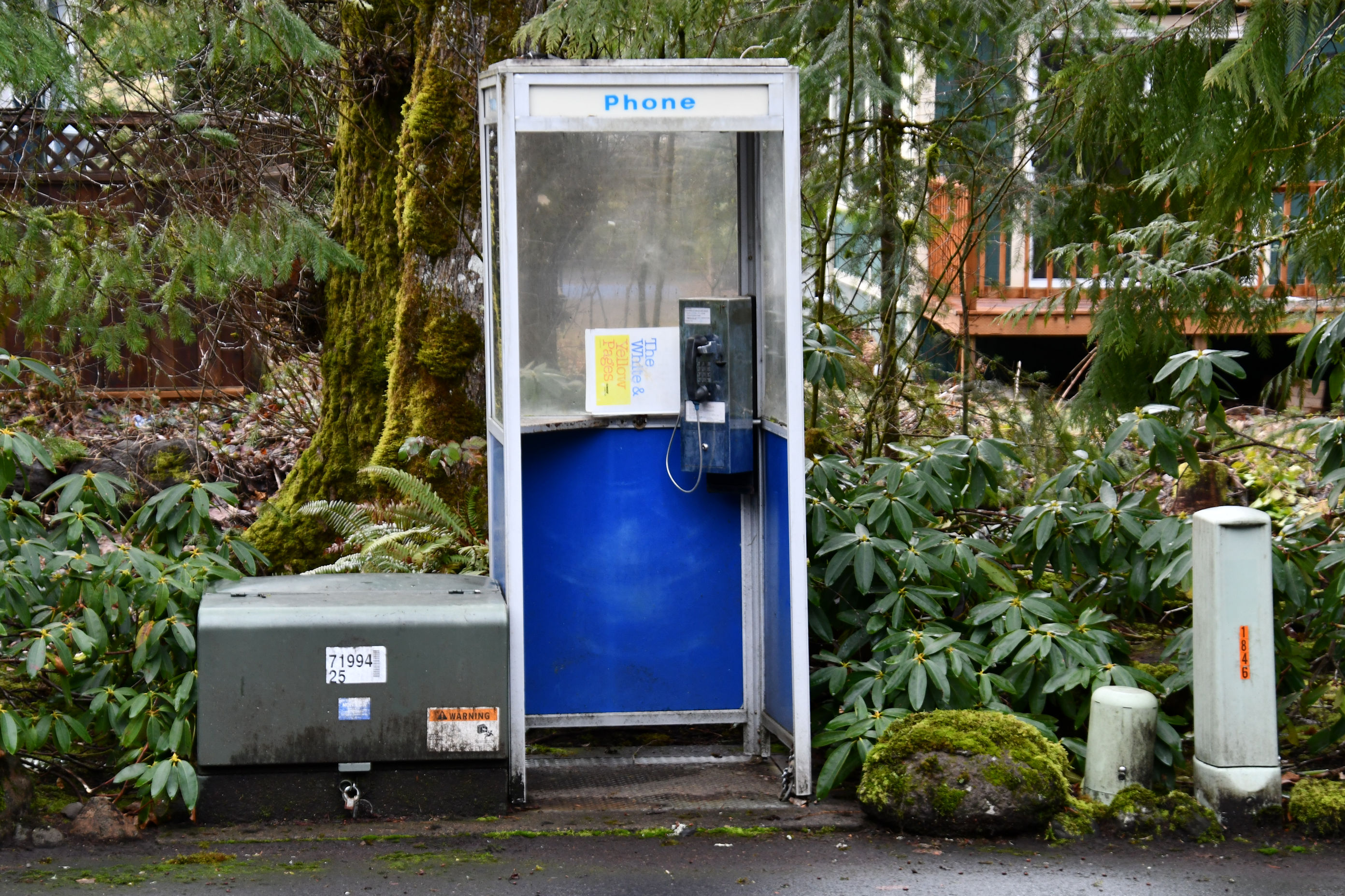 We got a kick out of a bunch of old stuff around the property used as decoration. There were ringer-washers, old bicycles, and other kinds of iron contraptions. This old phone booth was one of the newer items, and looks as though it may have been functional at one point, but today it is not.