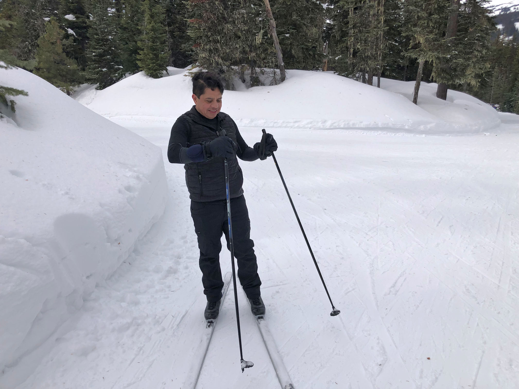 I had so much anxiety, you have no idea. I worried that I would not learn how to ski right and would not have any fun and would ruin Pedro’s birthday. I knew Pedro loved skiing, and I wanted him to have fun. If I was suffering, he would not have fun. So I told him, “Go! Take off and get comfortable and have fun with it, then come back and find me.” I was happy that he did.